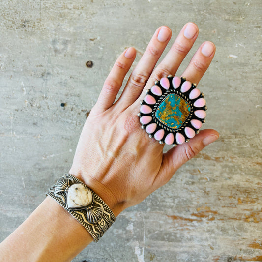 Navajo Sheila Becenti Sterling Silver & Golden Hills Cluster Ring