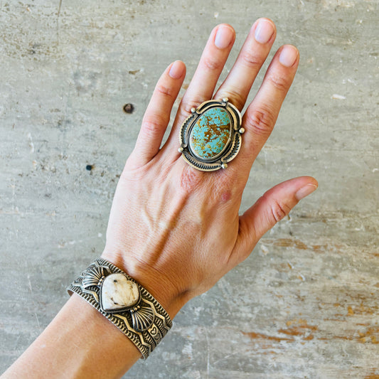 Navajo Benjamin Jimenez Silver Silver & Sonoran Mountain Turquoise Ring