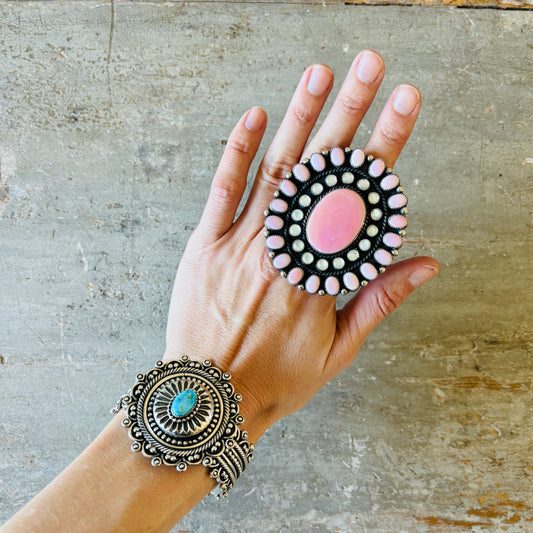 Navajo Sterling Silver - Pink Conch & MOP Cluster Ring