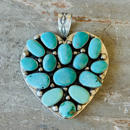 Navajo Kathleen Livingston Sterling Silver & Kingman Turquoise Heart Cluster Pendant