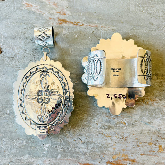 Navajo Hemerson Brown Sterling Silver & Turquoise Mountain Pendant
