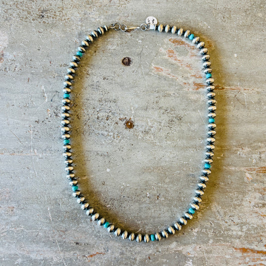 Navajo Preston Haley Sterling Silver & Kingman Turquoise 8mm Handmade Pearls Necklace