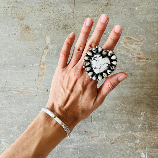 Navajo Hemerson Brown Sterling Silver & Wild Horse Jasper Heart Cluster Cuff