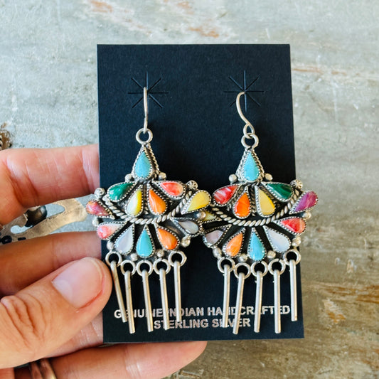 Zuni Phyllis Coonsis Sterling Silver Multi Stone Cluster Earrings