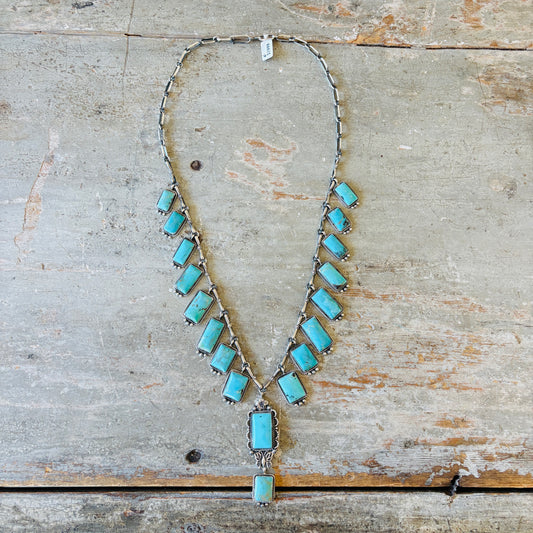 Navajo Brenda Jimenez Sterling Silver & Kingman Turquoise Statement Necklace