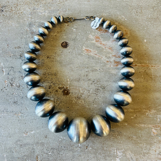 Navajo Tonisha Haley Sterling Silver Graduated Handmade XL Round Handmade Pearls Necklace
