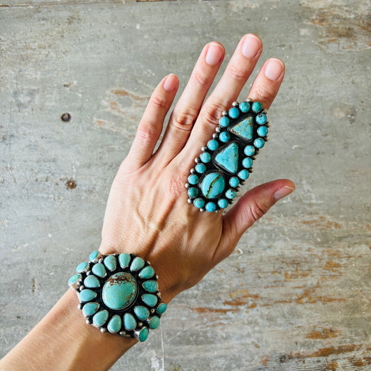 Navajo Bobby Johnson Sterling Silver & #8 Turquoise Cluster Cuff!