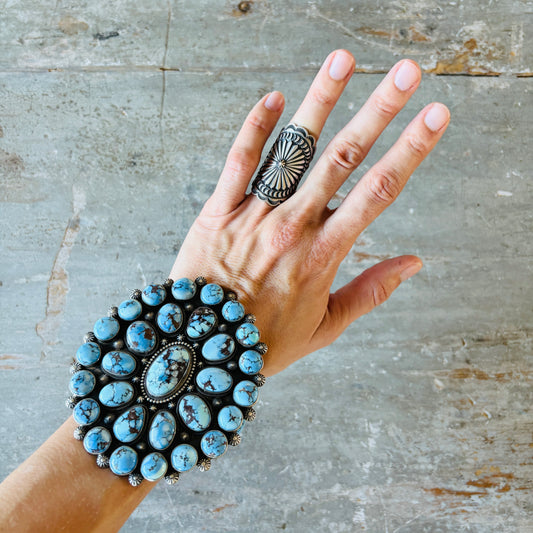 Navajo Aaron Anderson Sterling Silver & Kingman Turquoise Tufa Cast Statement Cuff