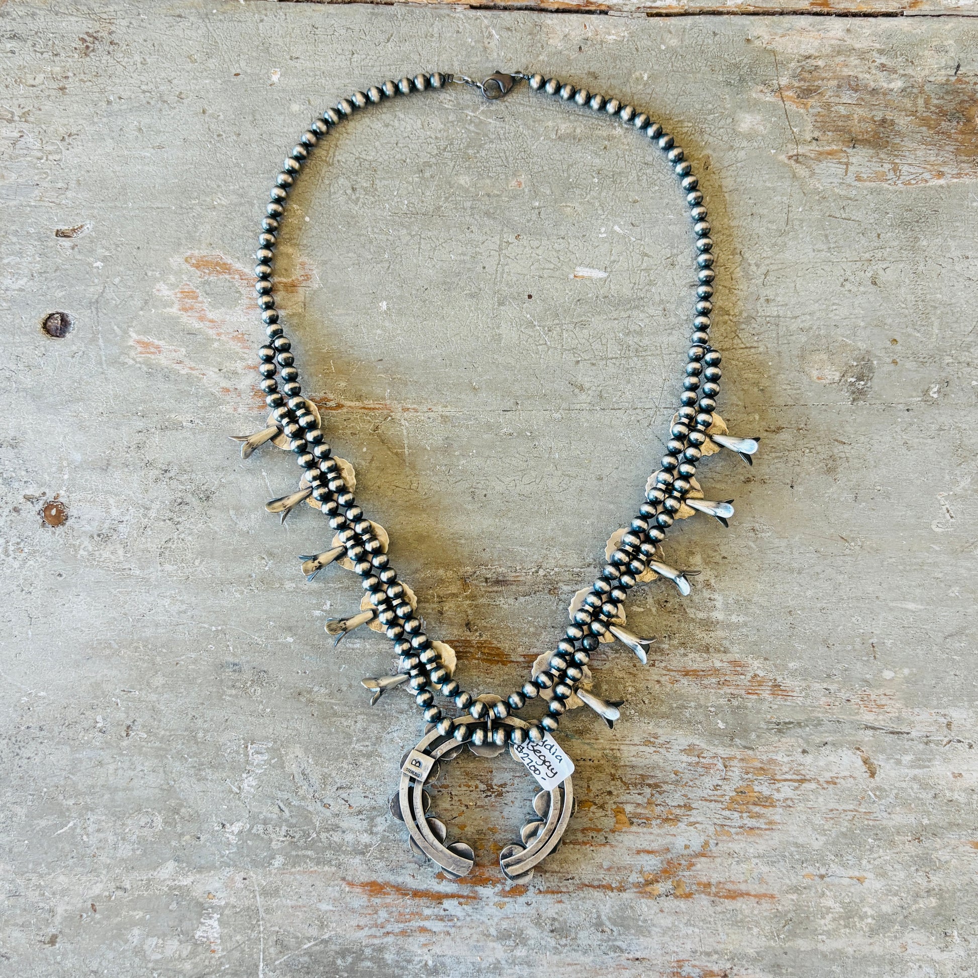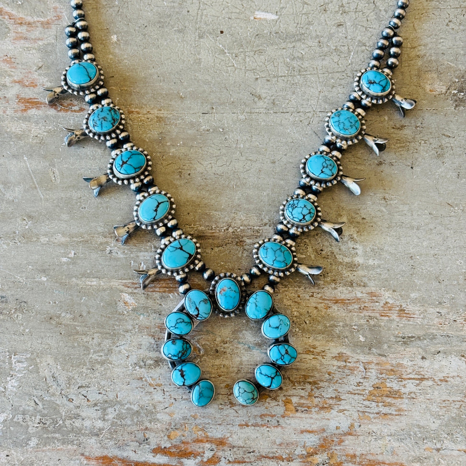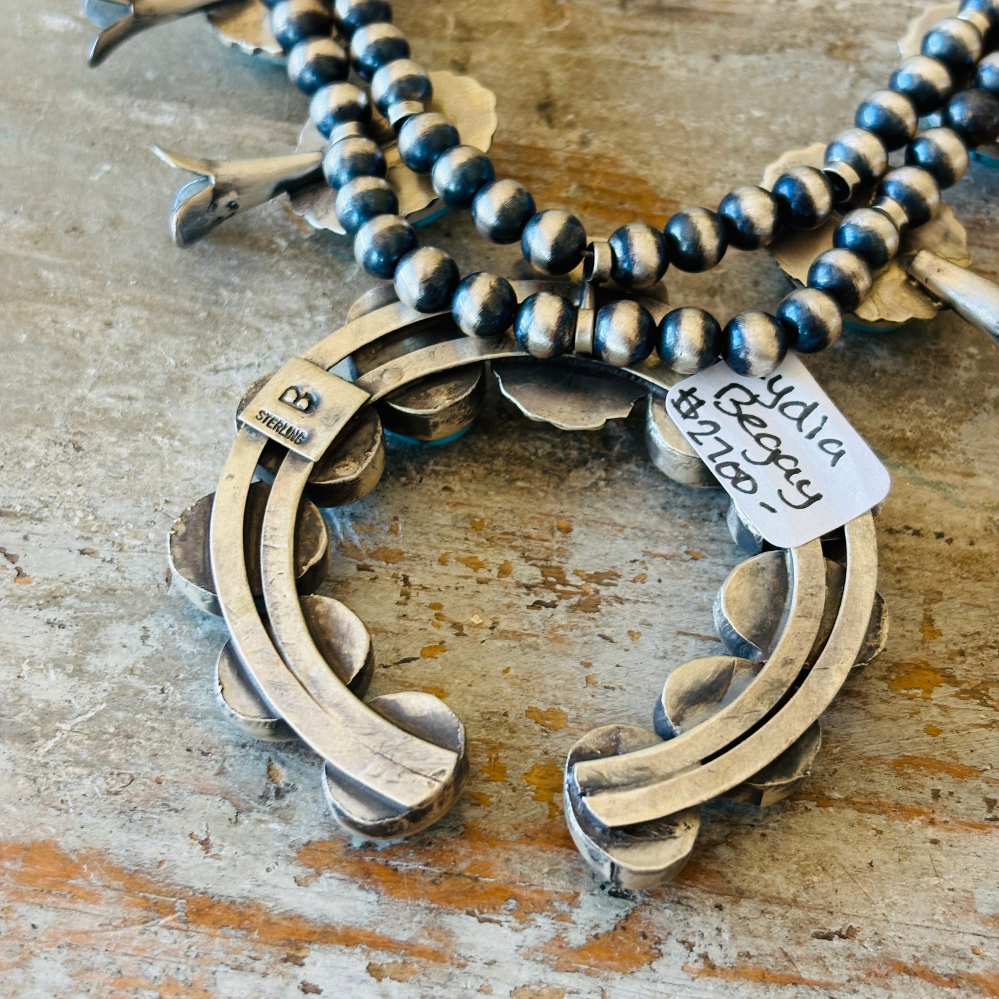 Navajo Lydia Begay Sterling Silver & Egyptian Turquoise Squash Blossom Necklace