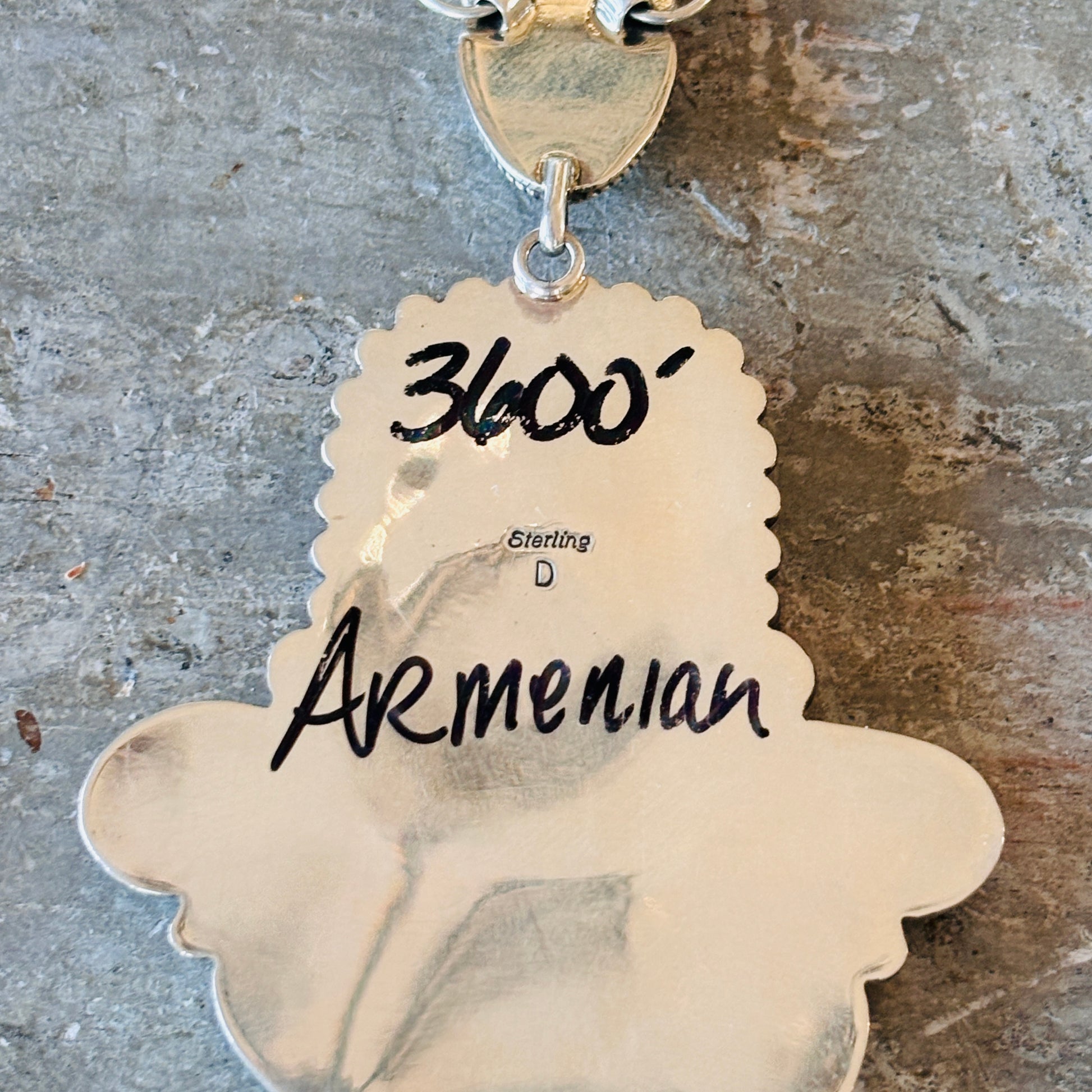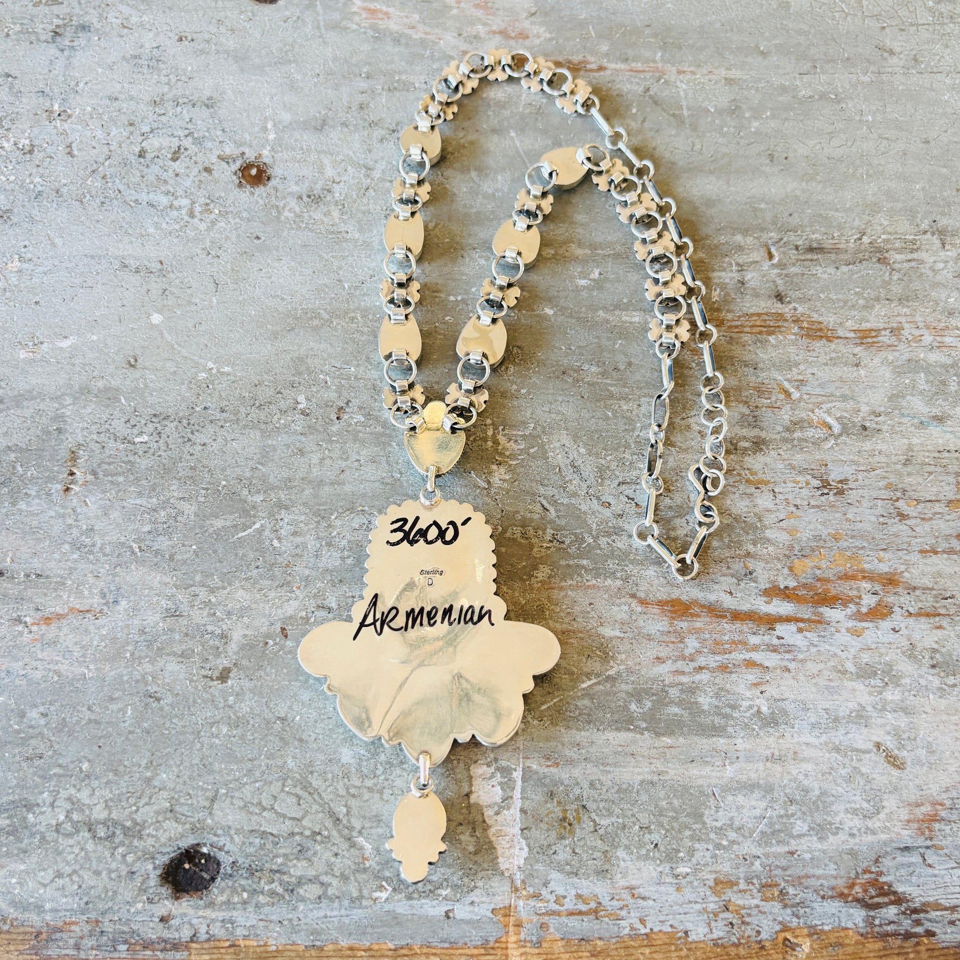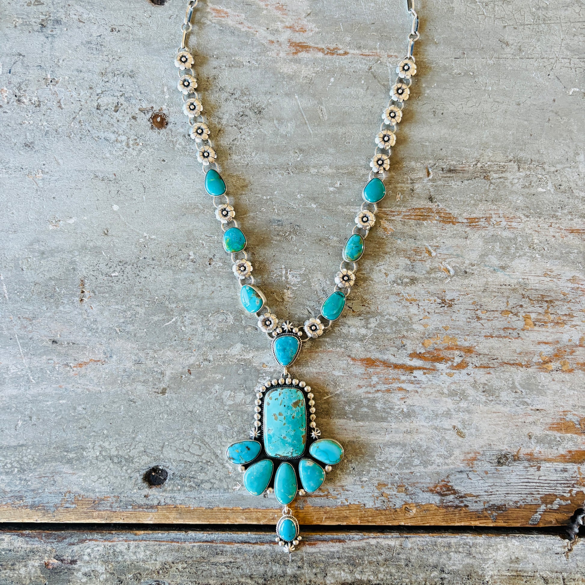 Navajo Albert Dawes Sterling Silver & Armenian Turquoise Statement Floral Necklace