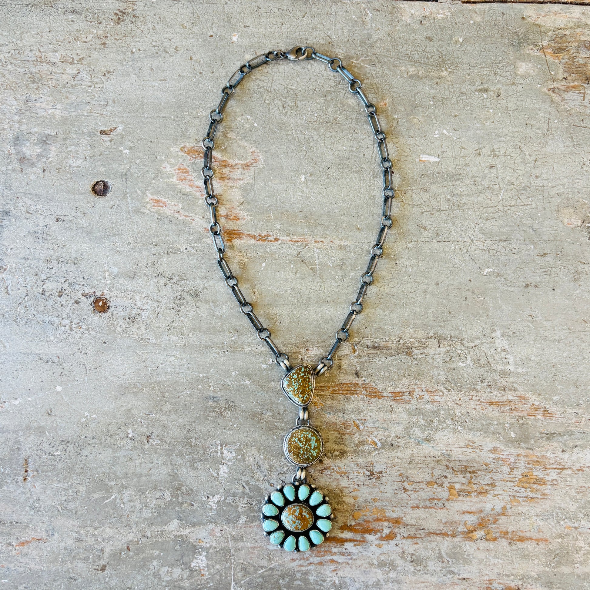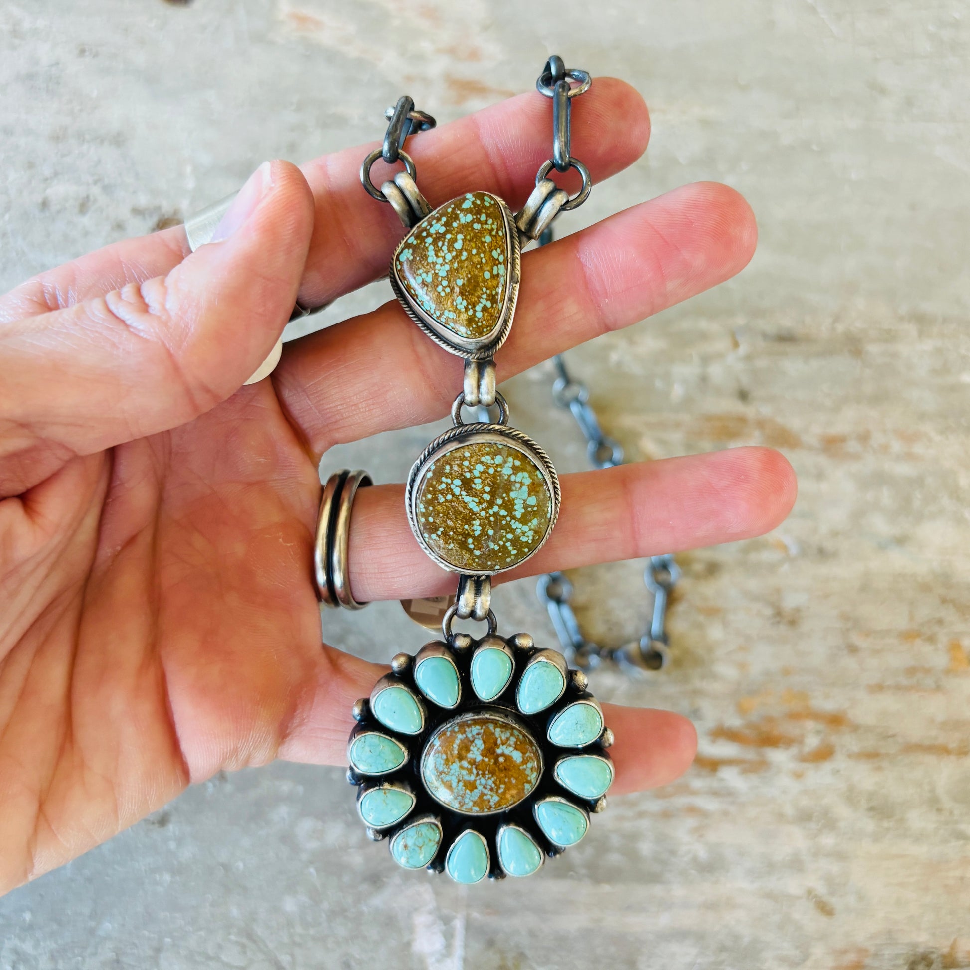 Navajo Betty Tom Sterling Silver & #8 Turquoise Cluster Lariat