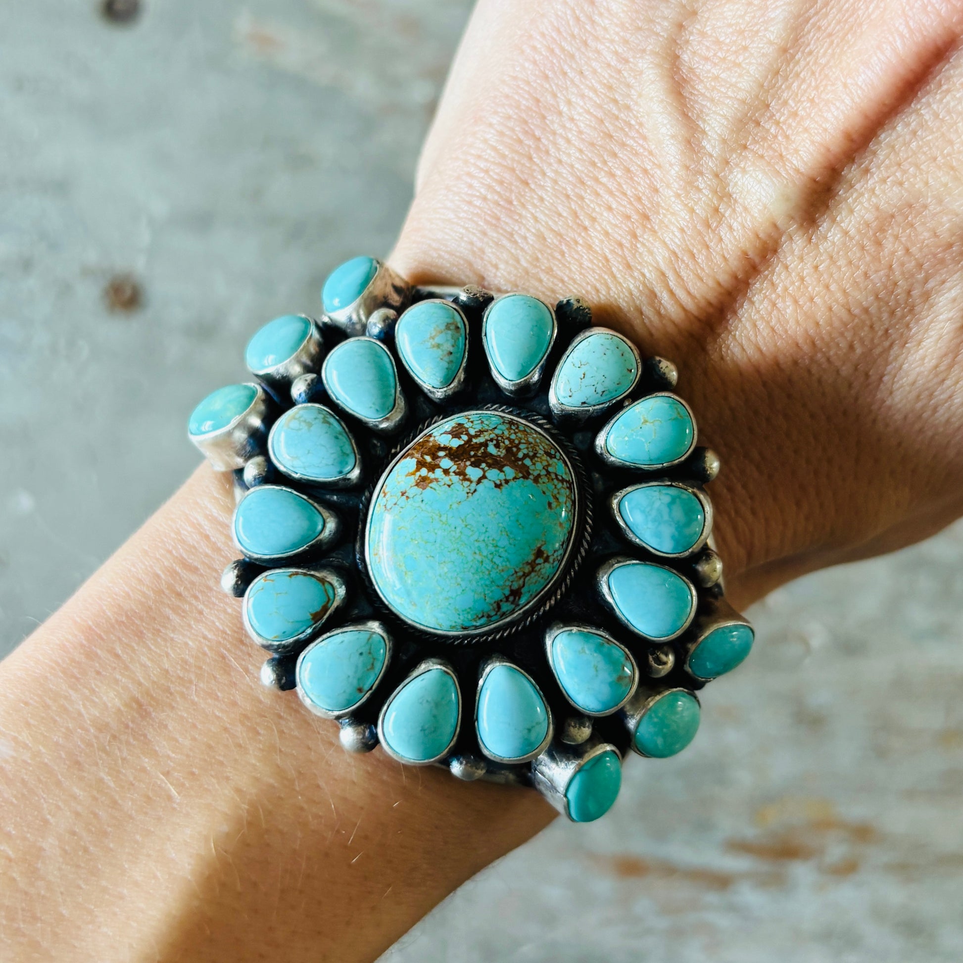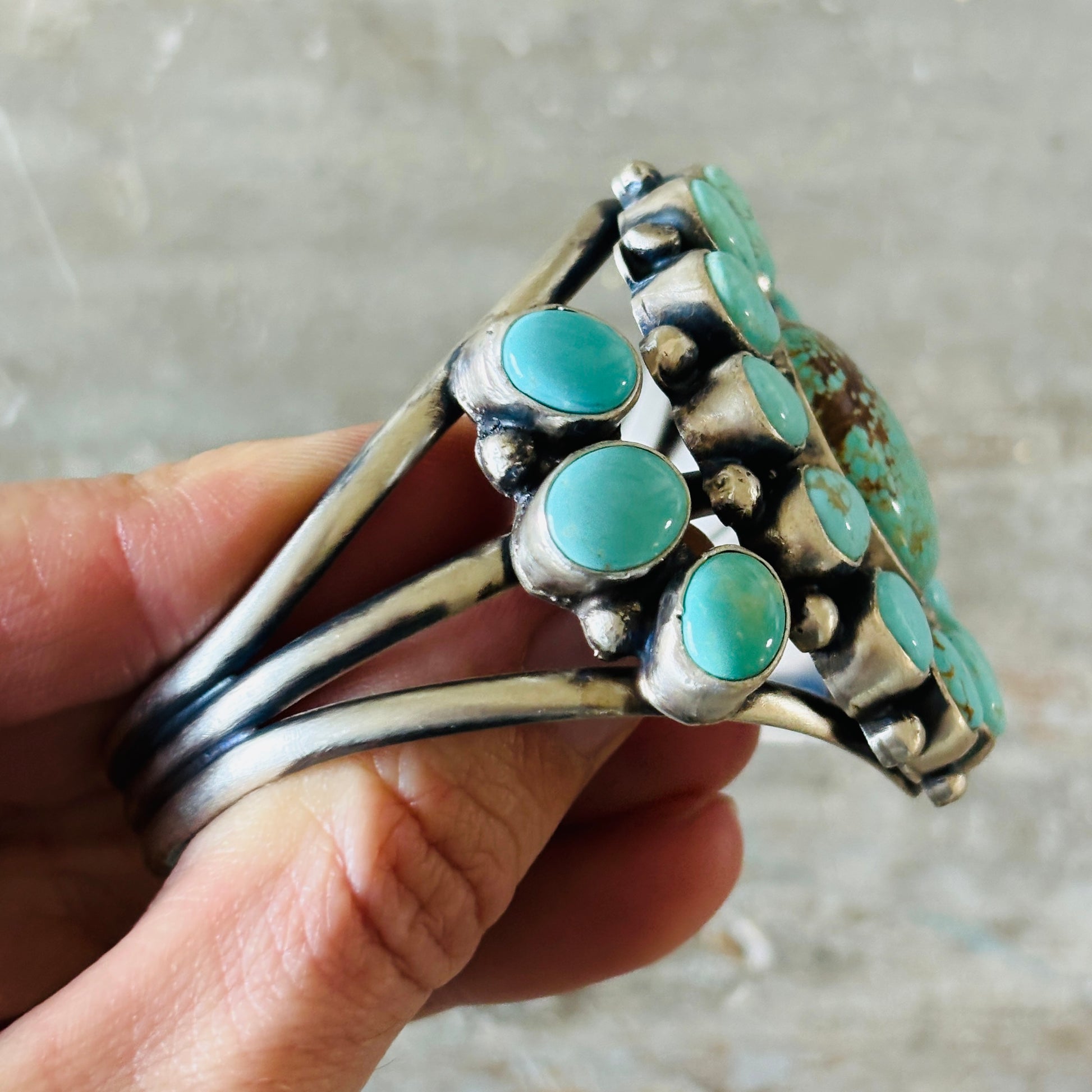 Navajo Bobby Johnson Sterling Silver & #8 Turquoise Cluster Cuff!