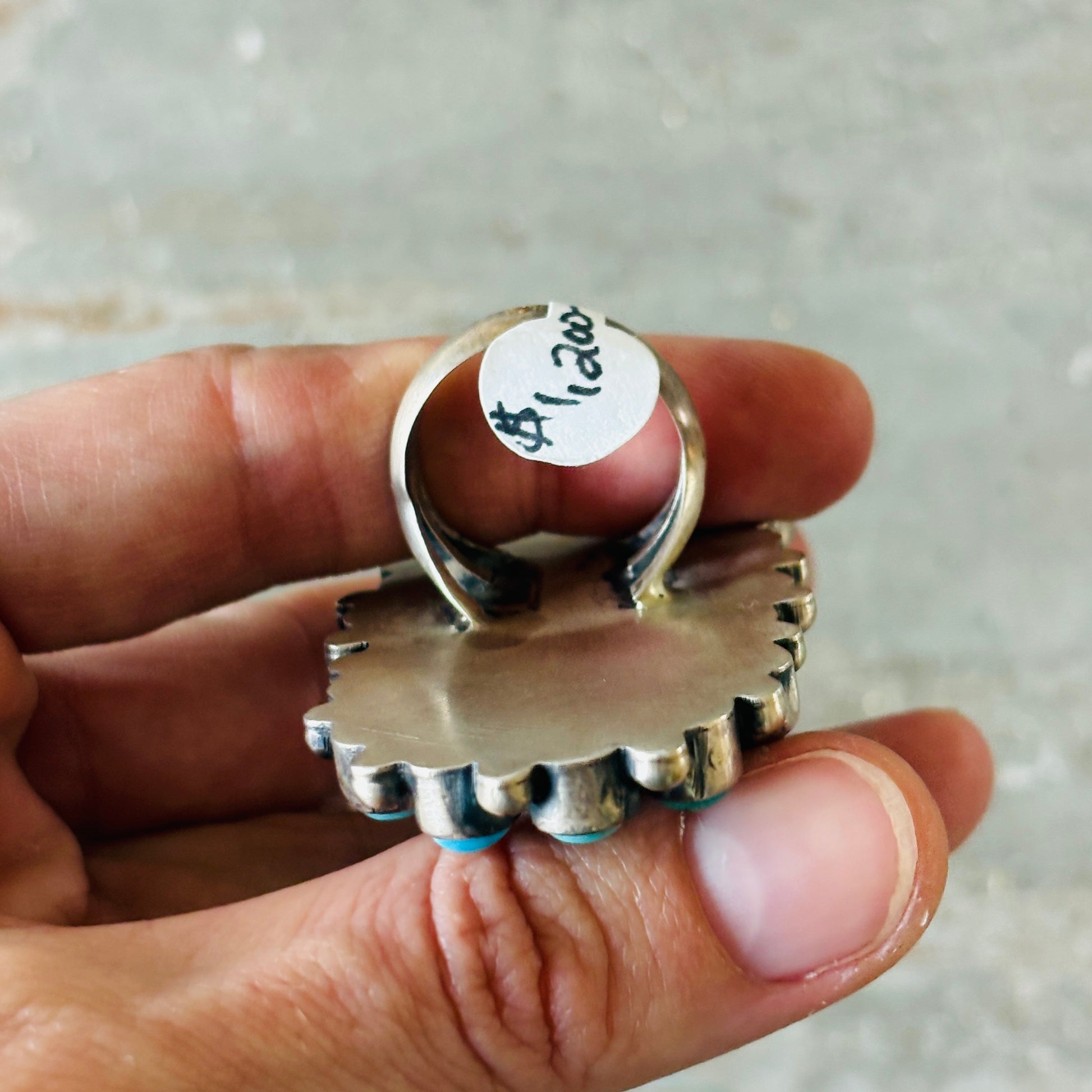 Navajo Bobby Johnson Sterling Silver & Mixed Turquoise Cluster Ring