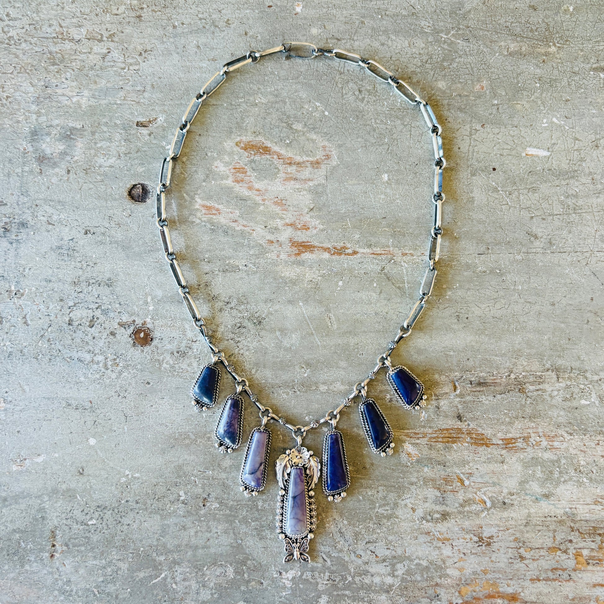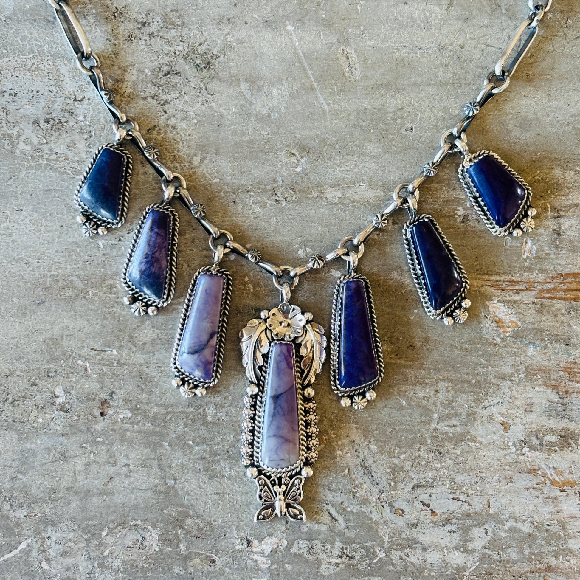Navajo Brenda Jimenez Sterling Silver & Sugilite Charms Necklace