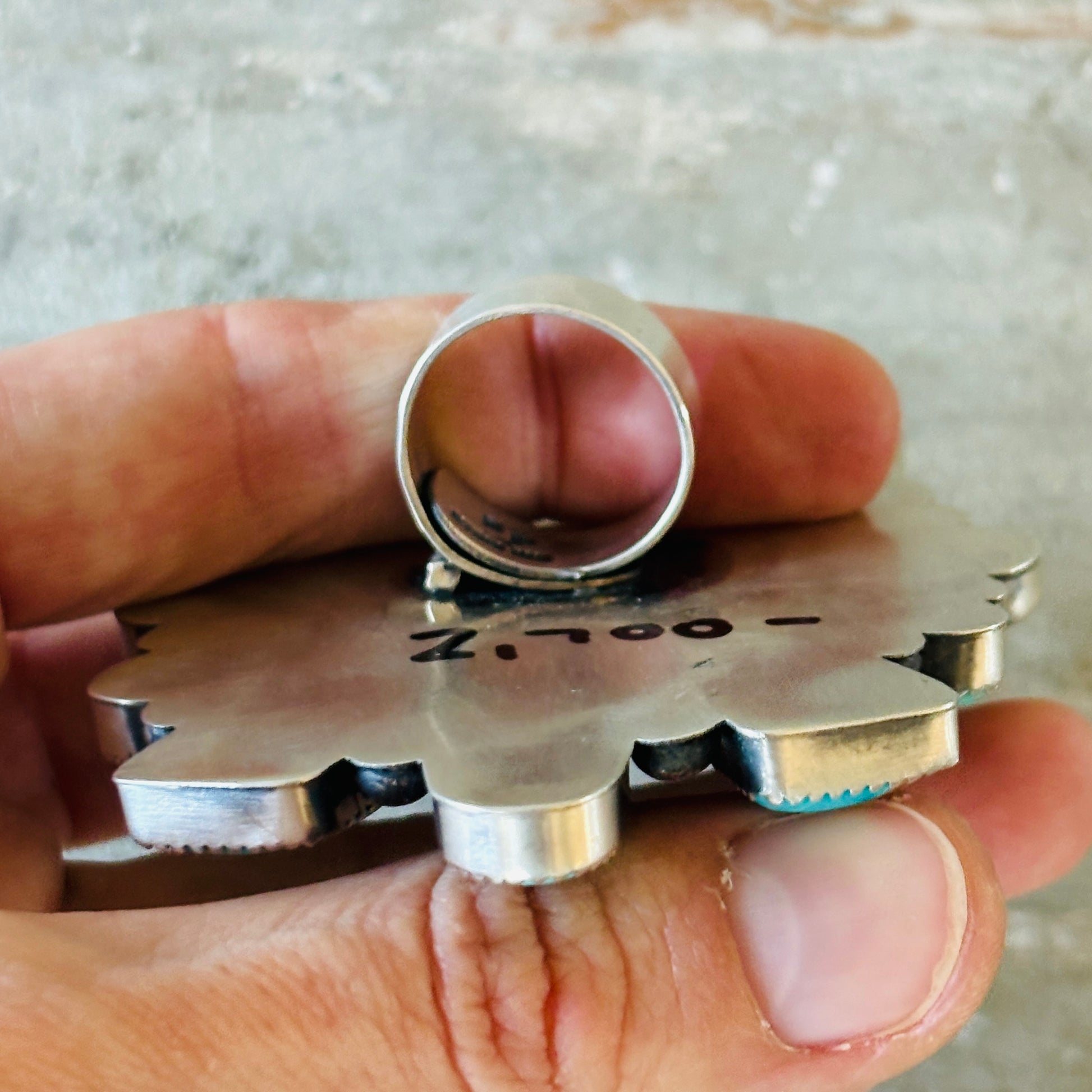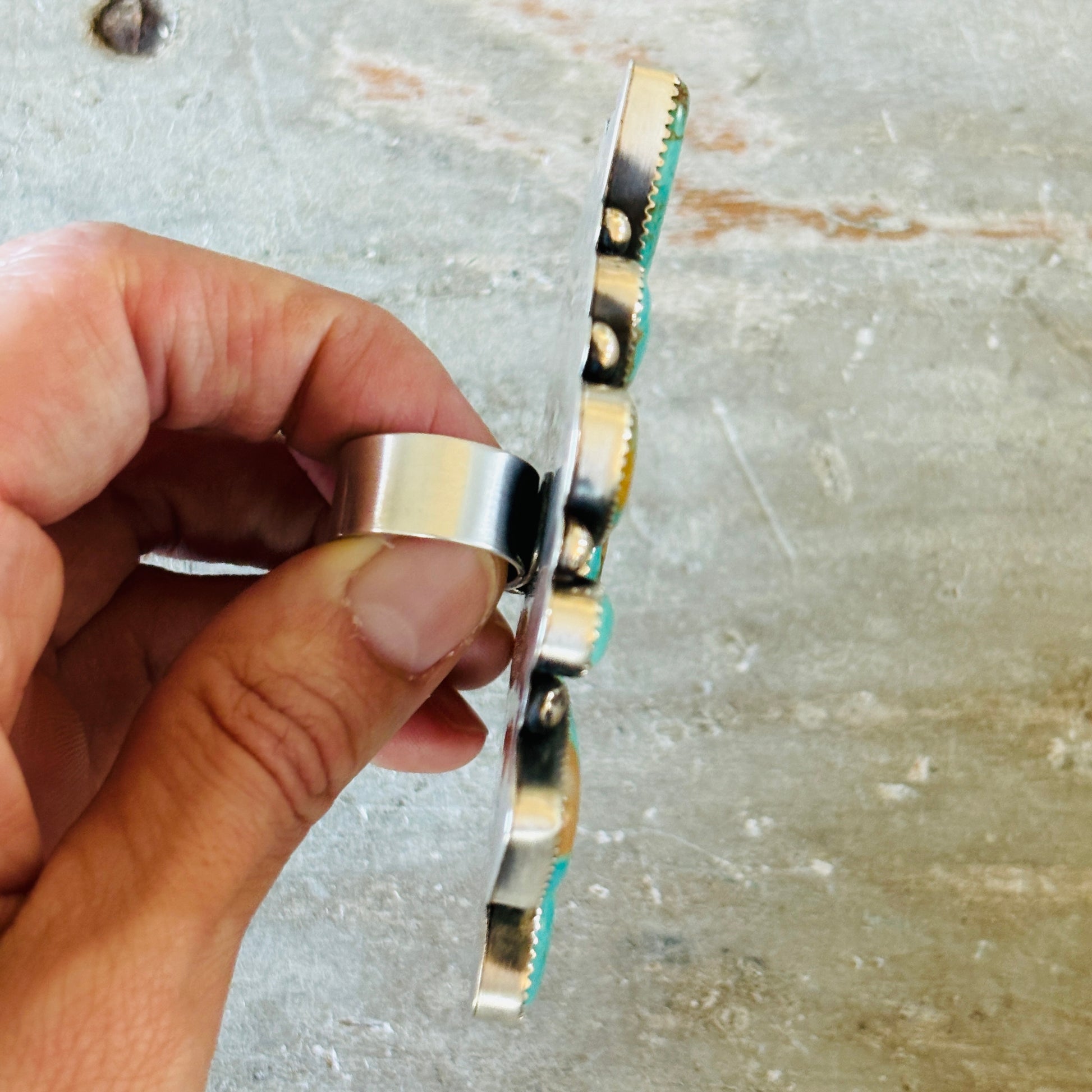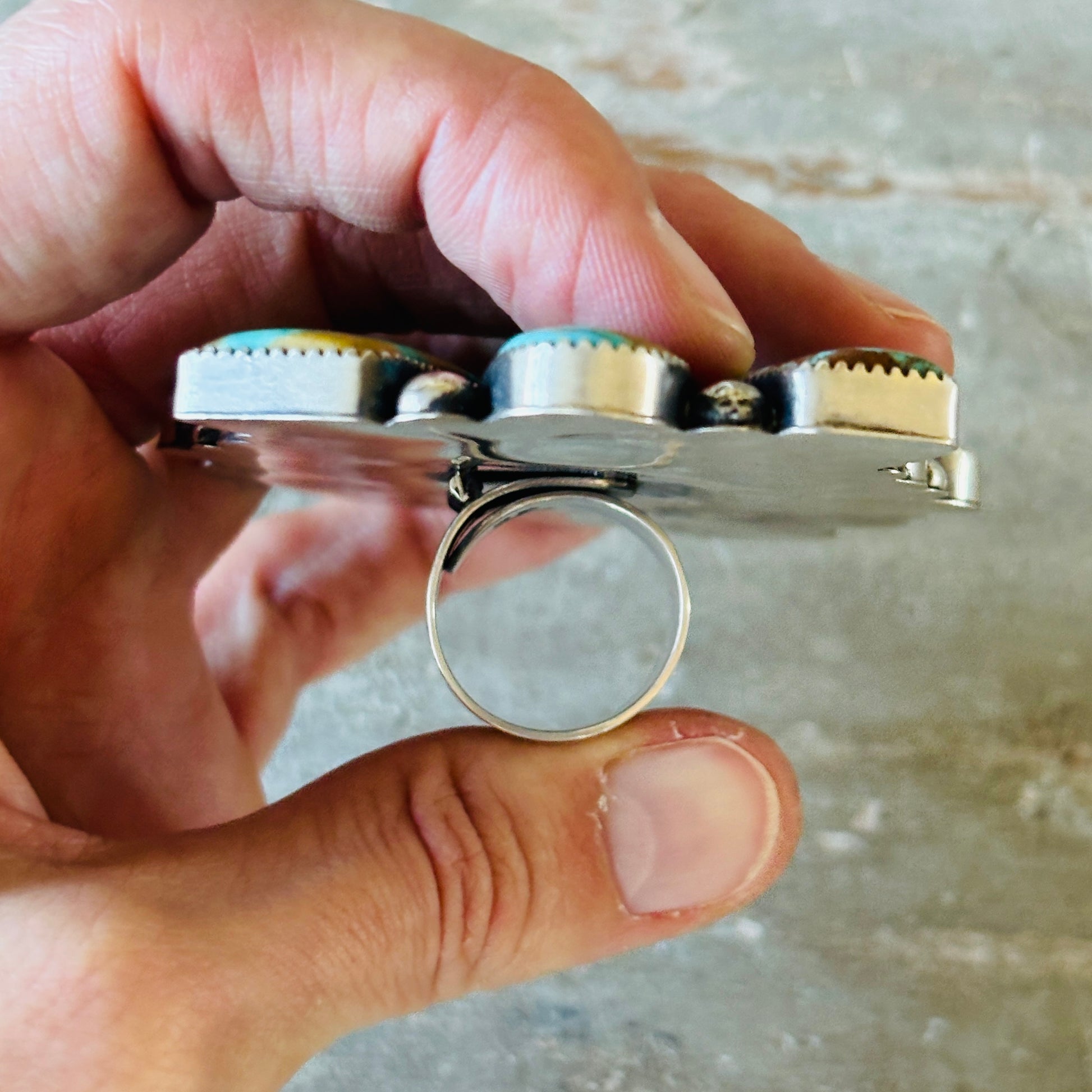 Navajo Brenda Pete Sterling Silver & Mixed Nevada Turquoise Cluster Ring