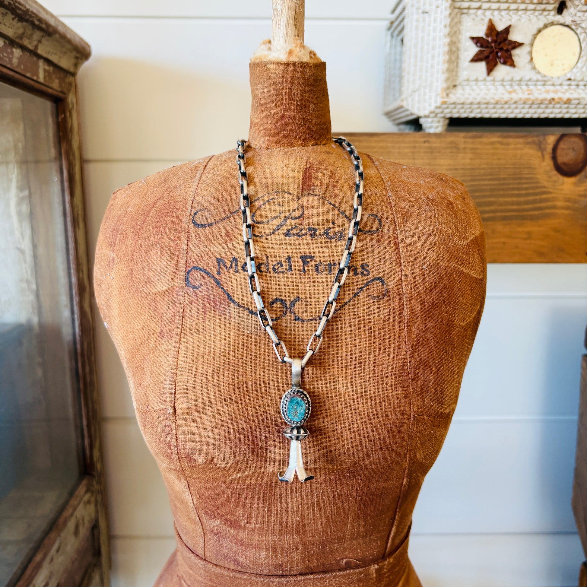 Navajo Chris Etsitty Sterling Silver & Bisbee Turquoise Blossom Pendant