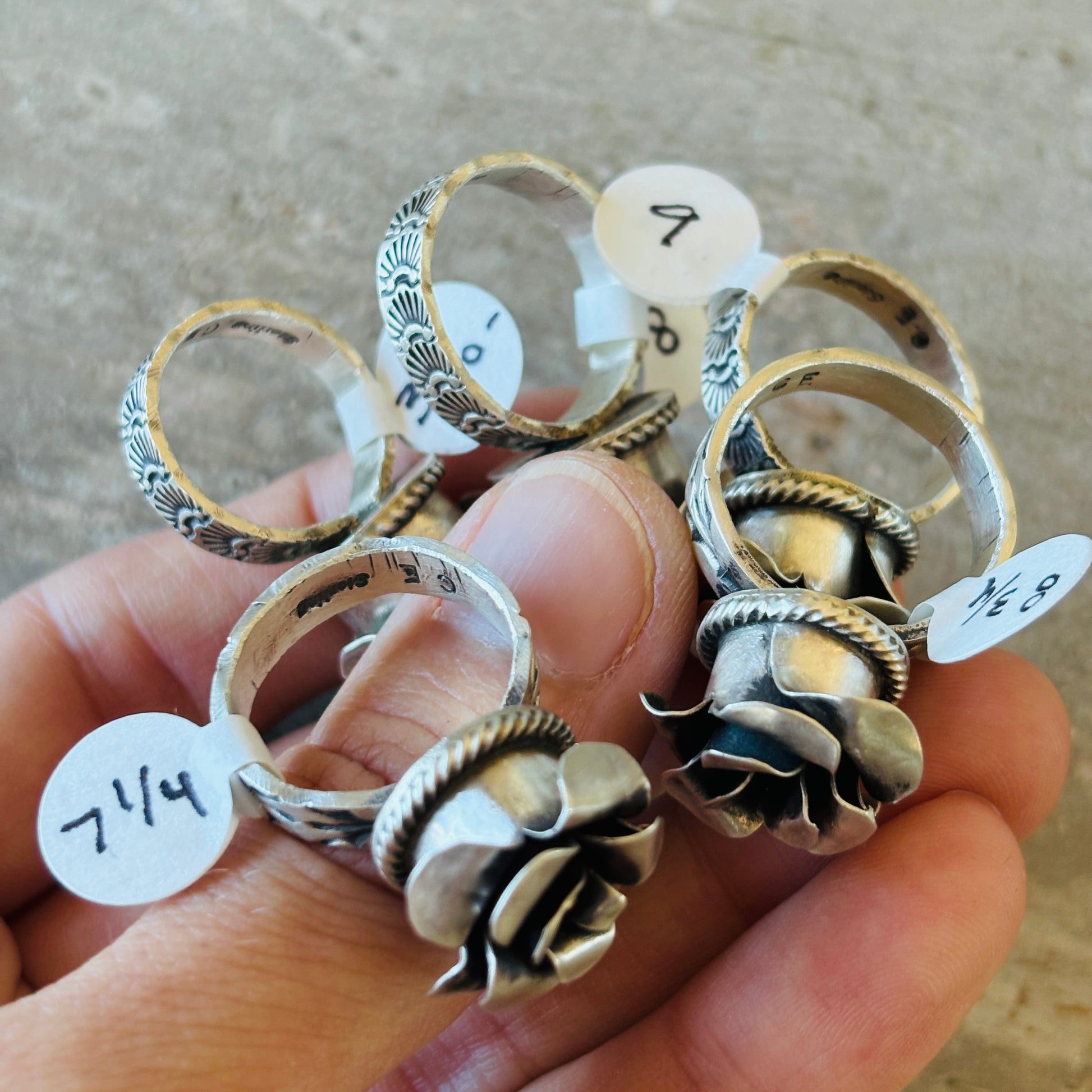 Navajo Chris Etsitty Sterling Silver Rose Rings