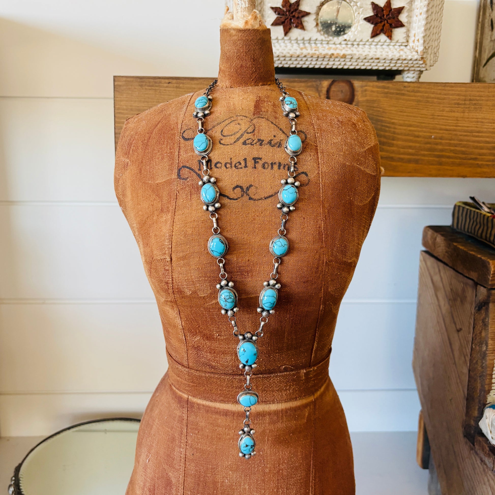 Navajo Cordelle Platero Sterling Silver & Egyptian Turquoise Lariat Necklace
