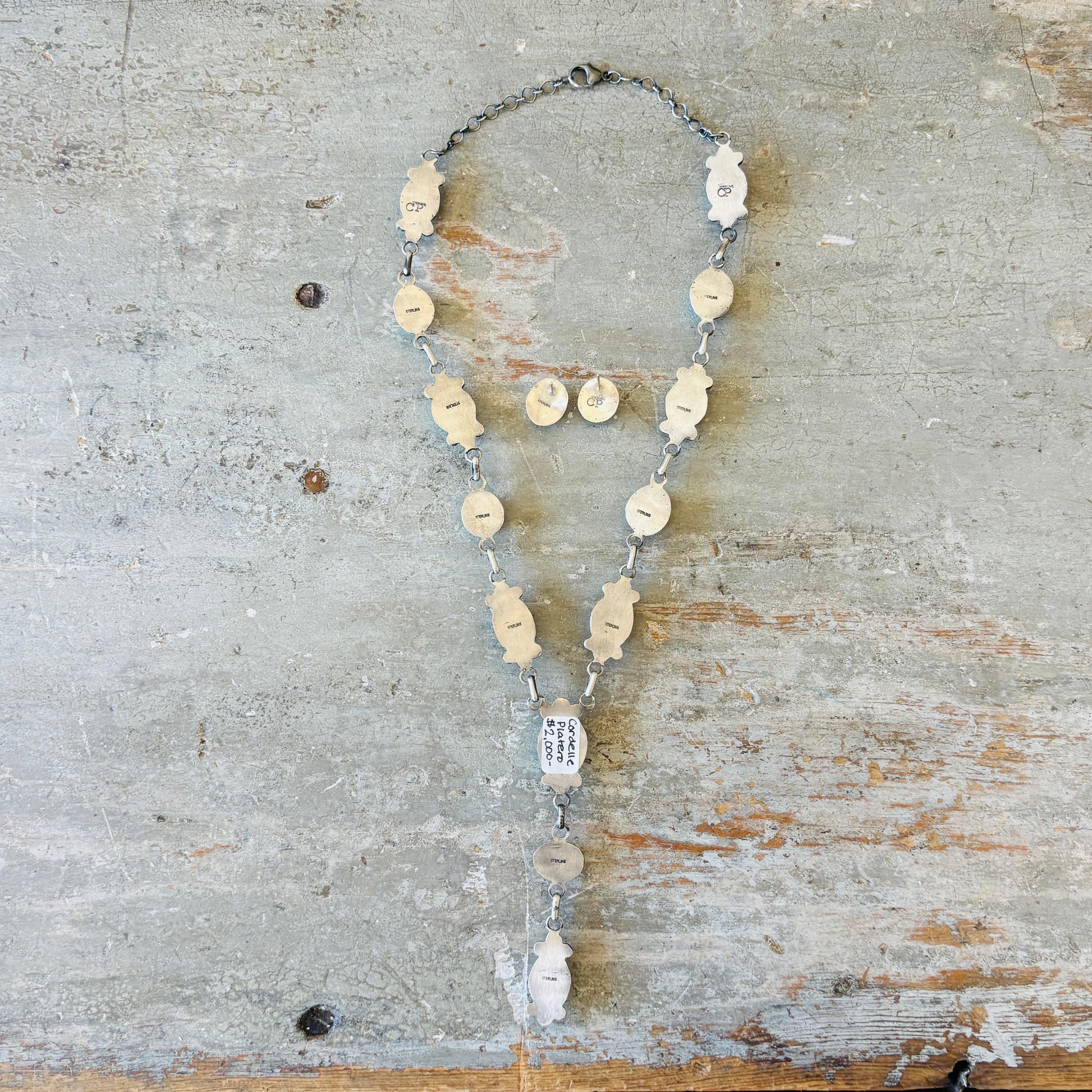 21 3/4” length with an additional 4 1/8” drop! Earrings 3/4” h x 1/2” w! ♥️