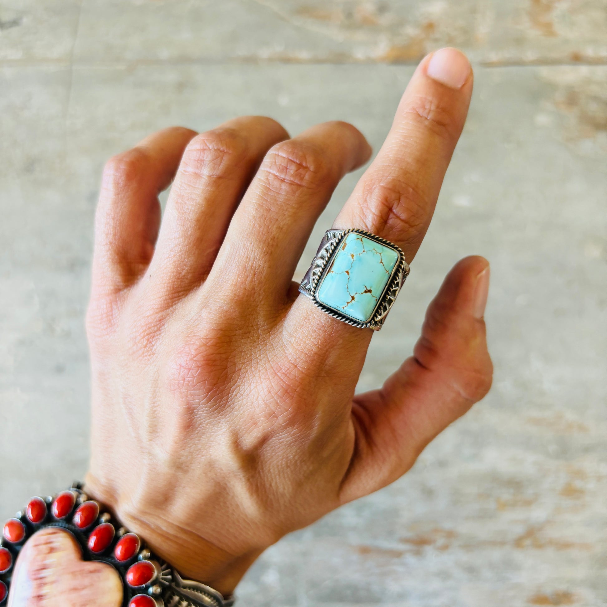 Navajo Darrell Cadman Sterling Silver & #8 Turquoise Ring