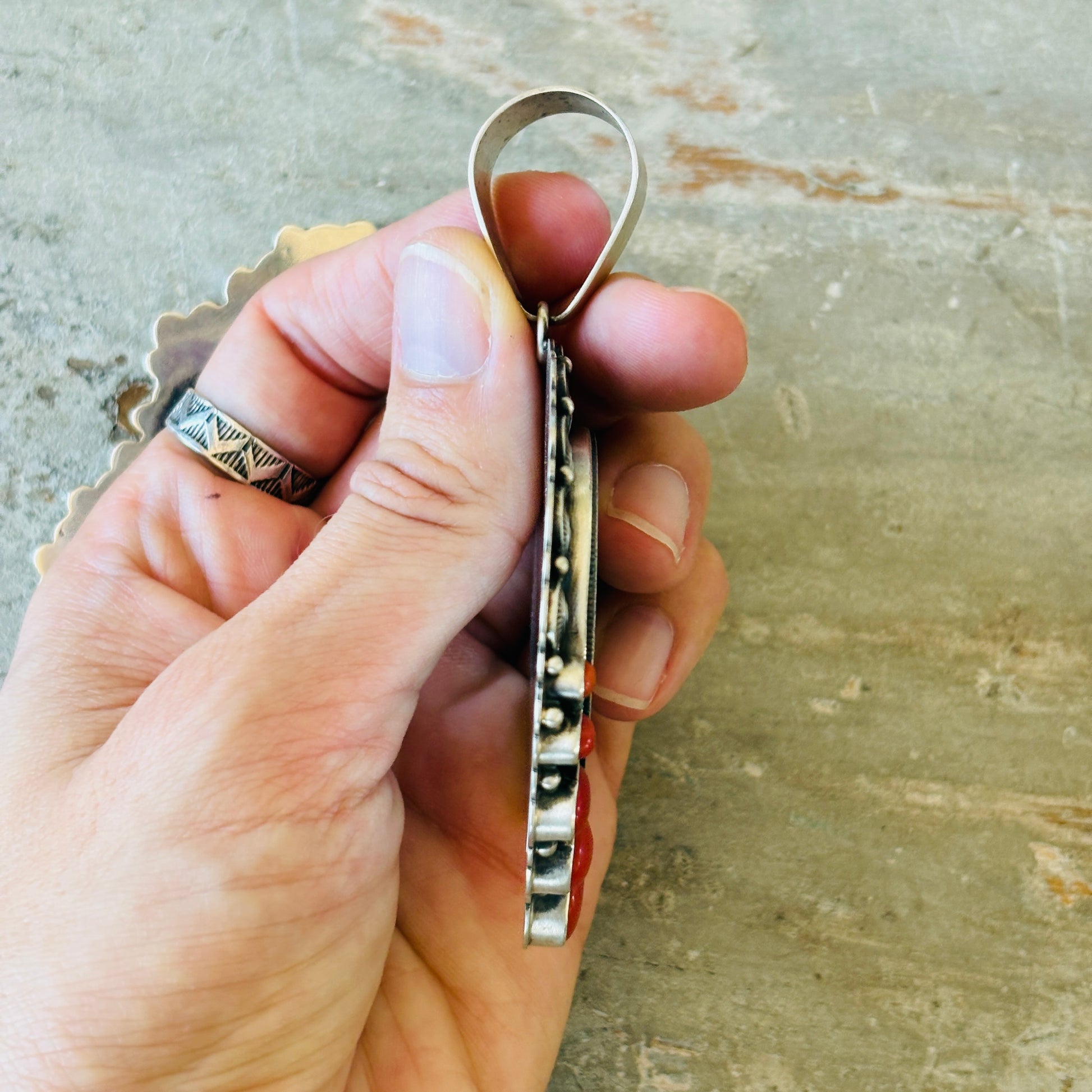 Navajo Randy Boyd Sterling Silver & Red Coral Coin Pendant