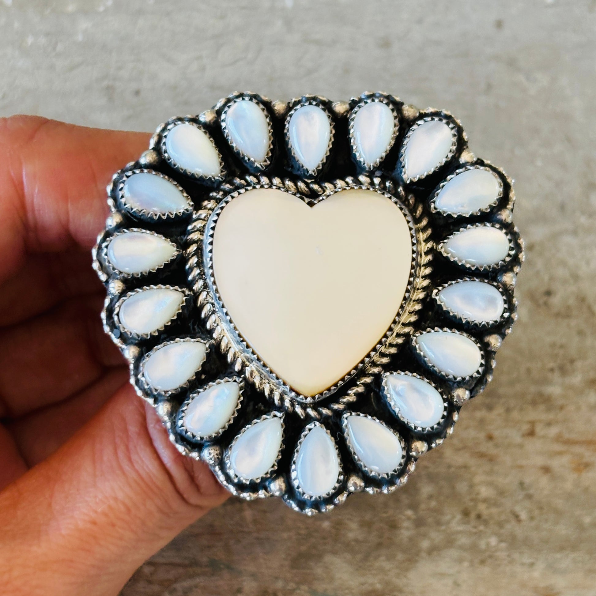 Navajo Ednei Yabney Sterling Silver & Shell Heart Cluster Ring