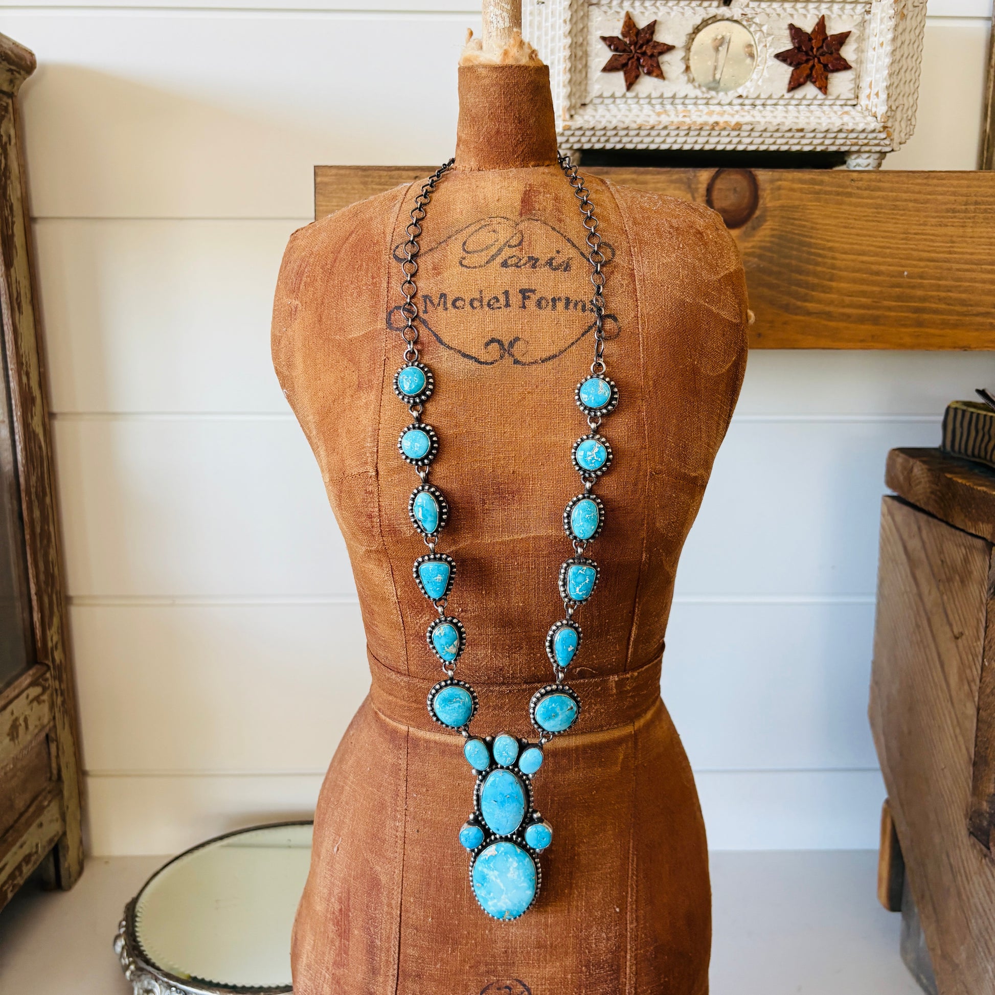 Navajo Ella Peter Sterling Silver & Blue Ridge Turquoise Necklace Set