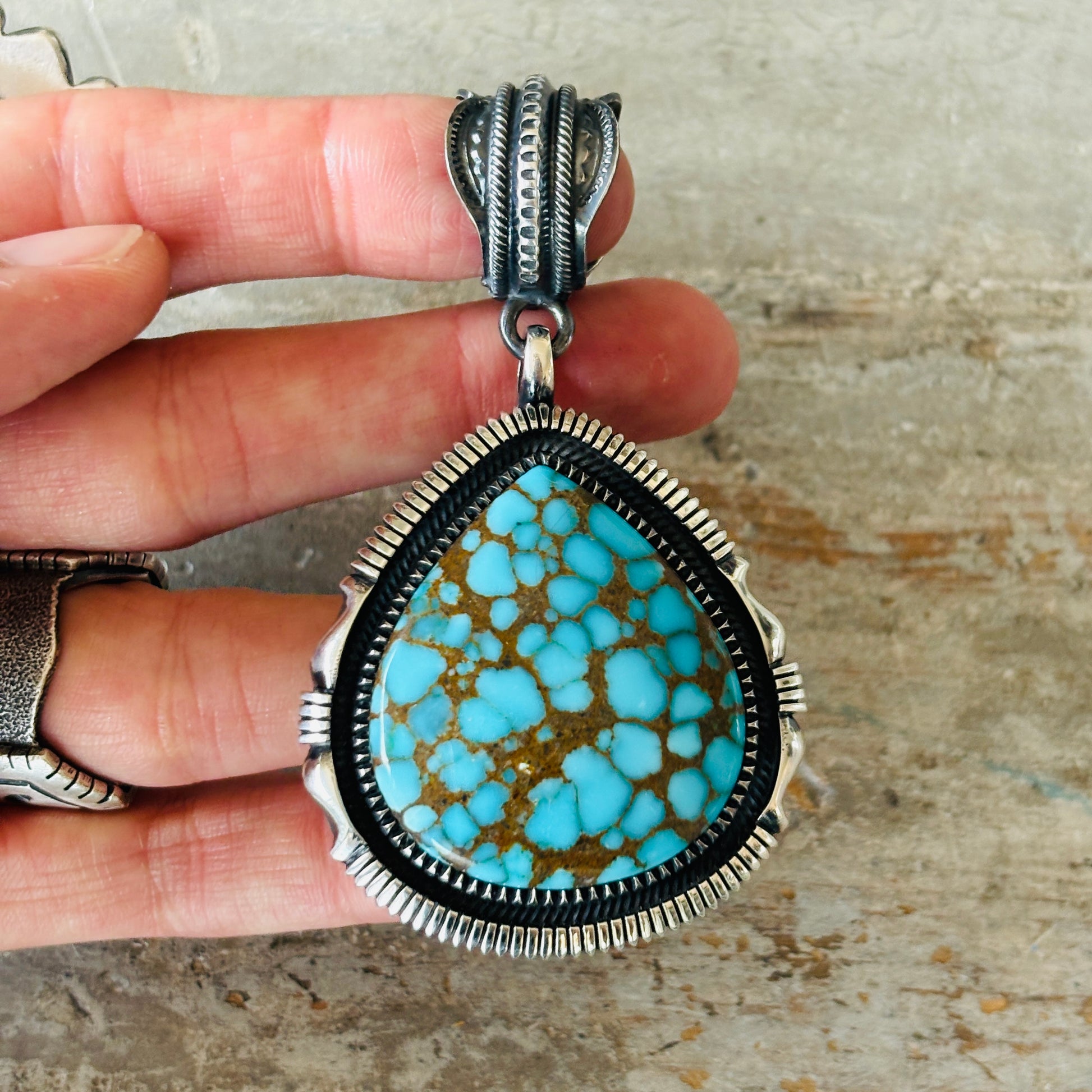Navajo Floyd Parkhurst Sterling Silver & Lone Mountain Turquoise Pendant