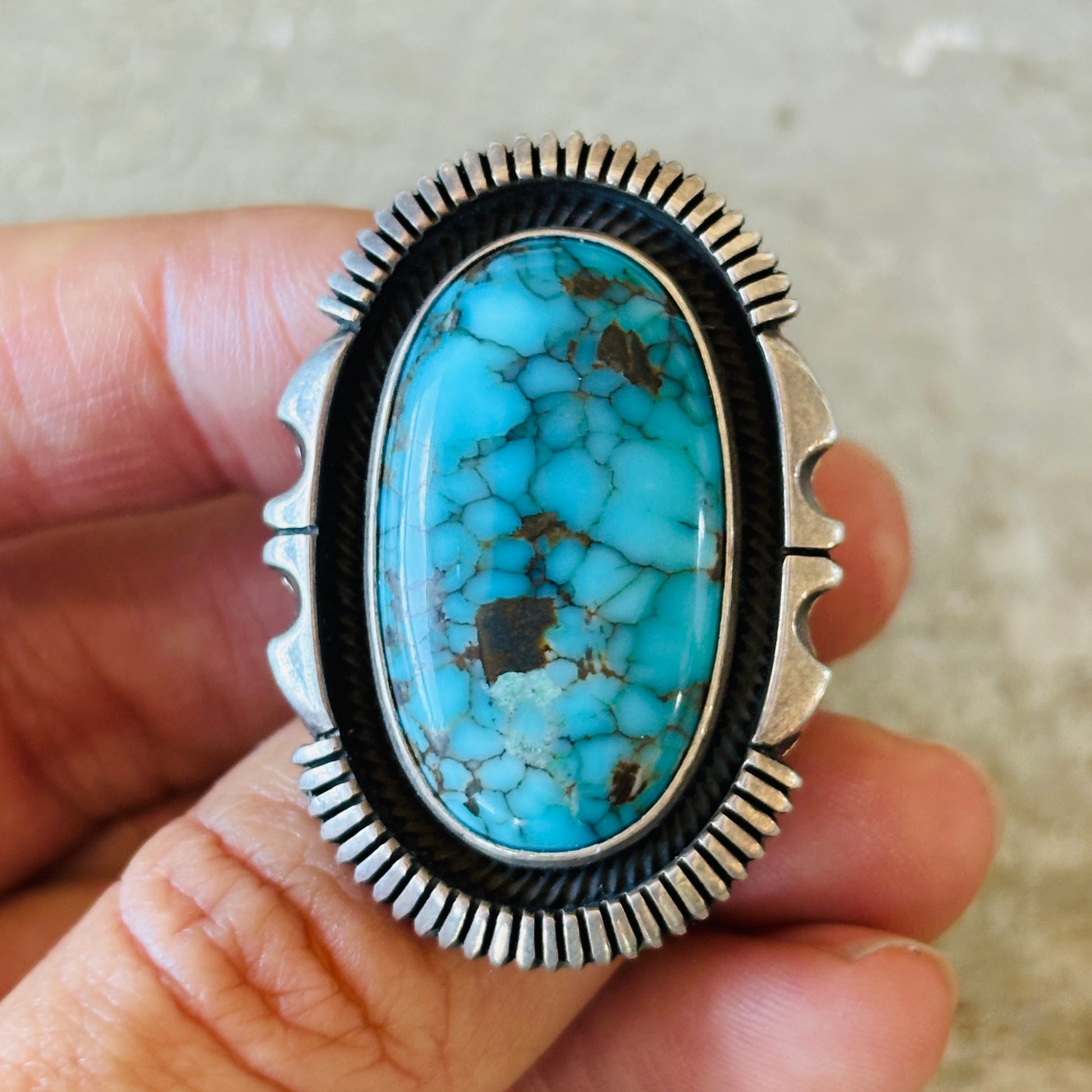 Navajo Floyd Parkhurst Sterling Silver & Lone Mountain Turquoise Ring