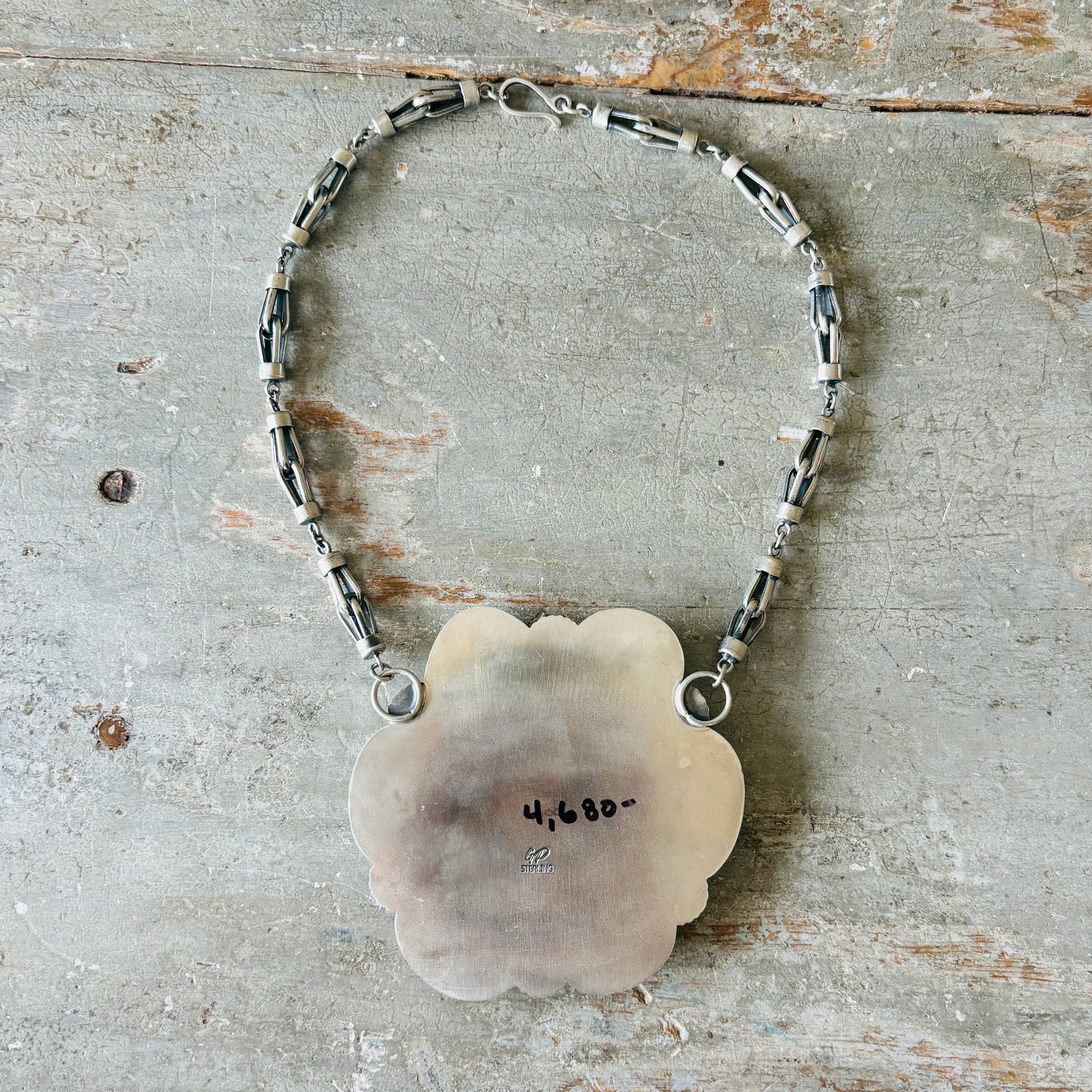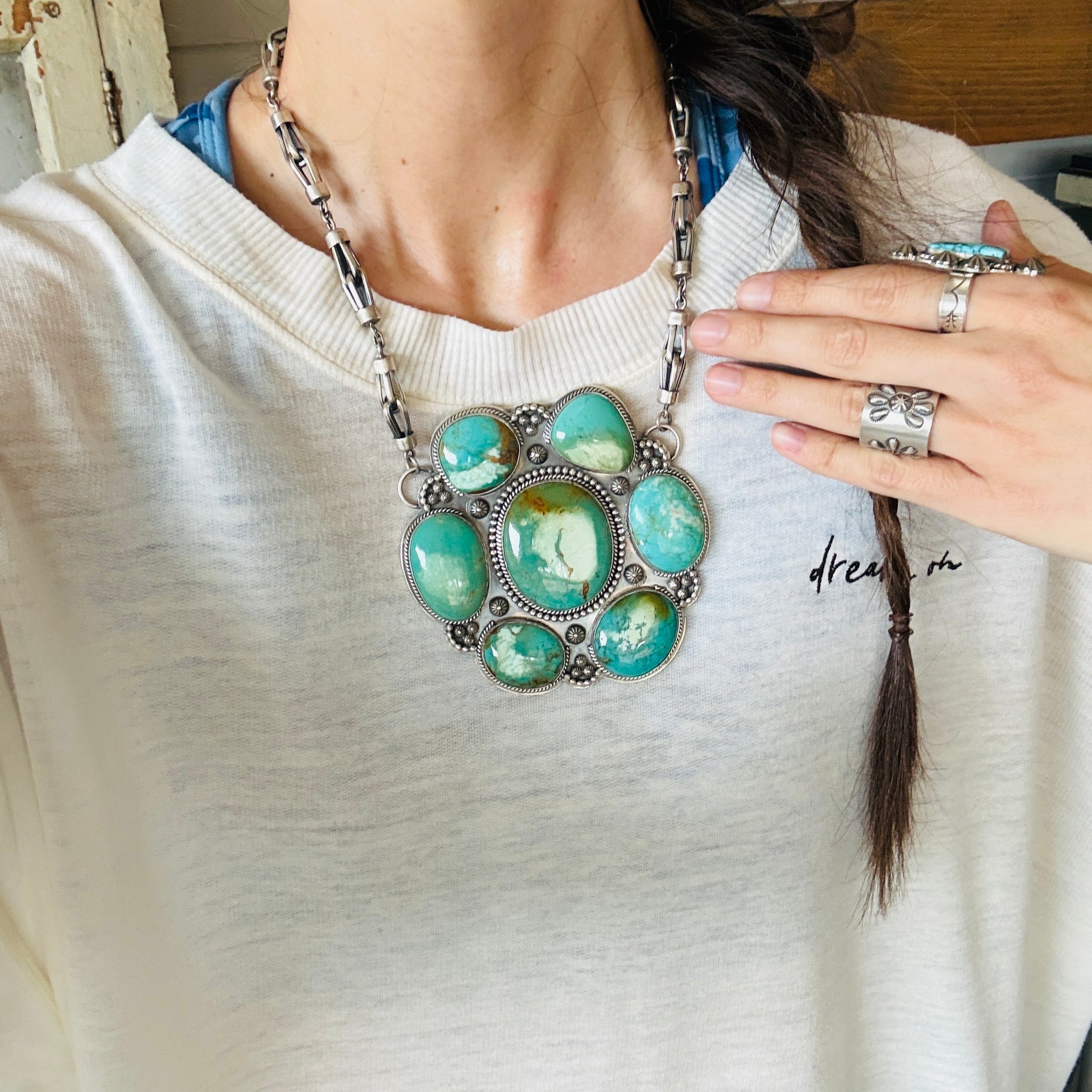 Navajo Gilbert Platero Sterling Silver & Cananea Turquoise Cluster Statement Necklace