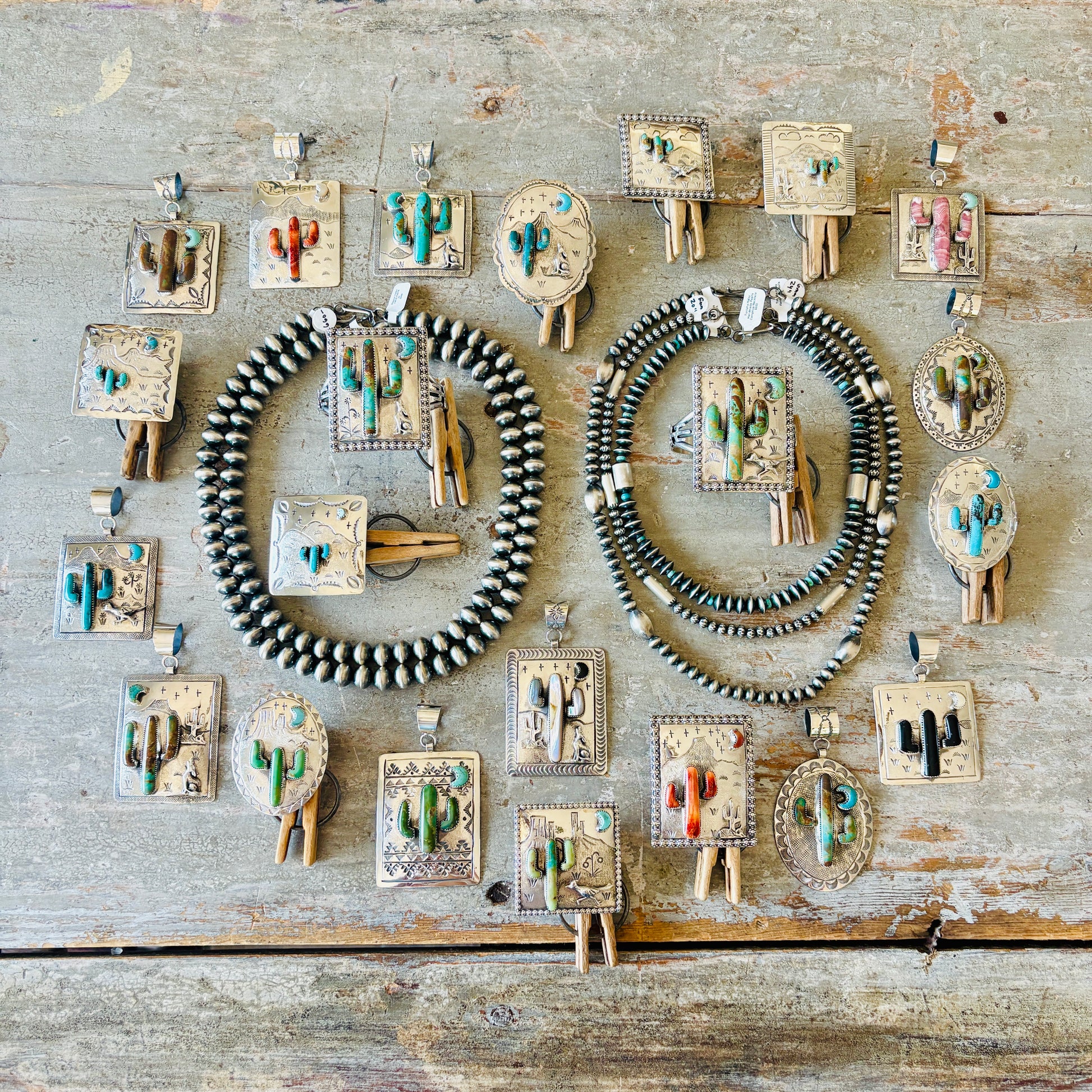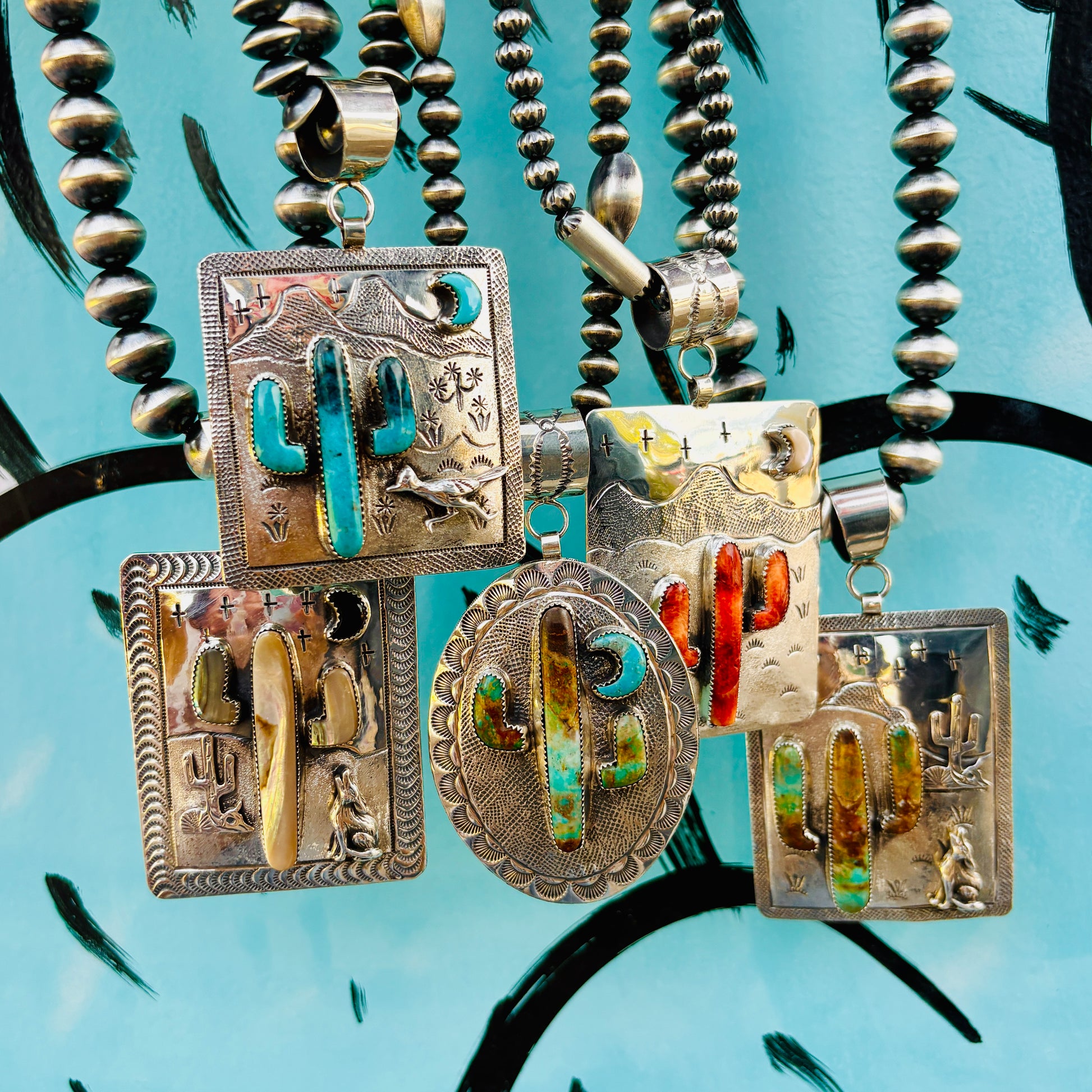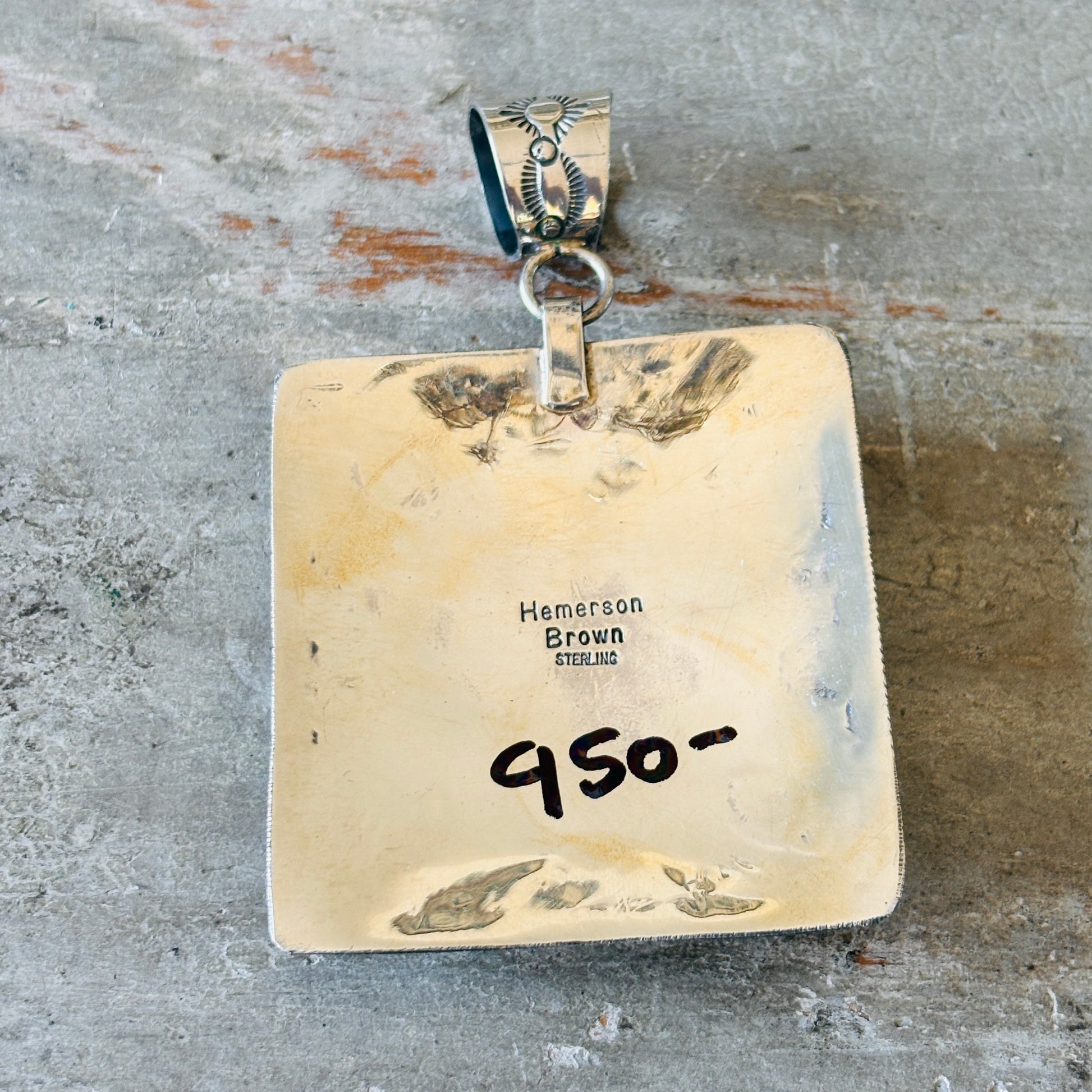 Navajo Hemerson Brown Sterling Silver & Kingman Turquoise Cactus Pendant