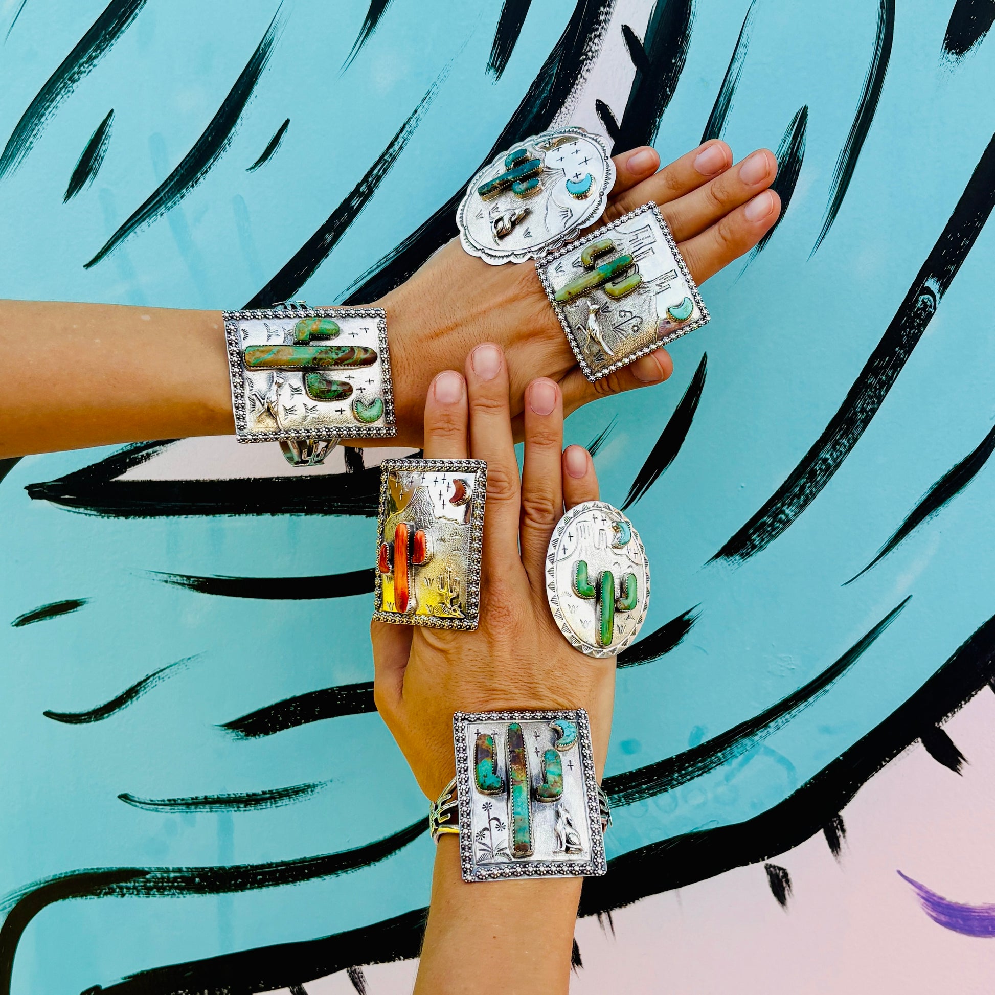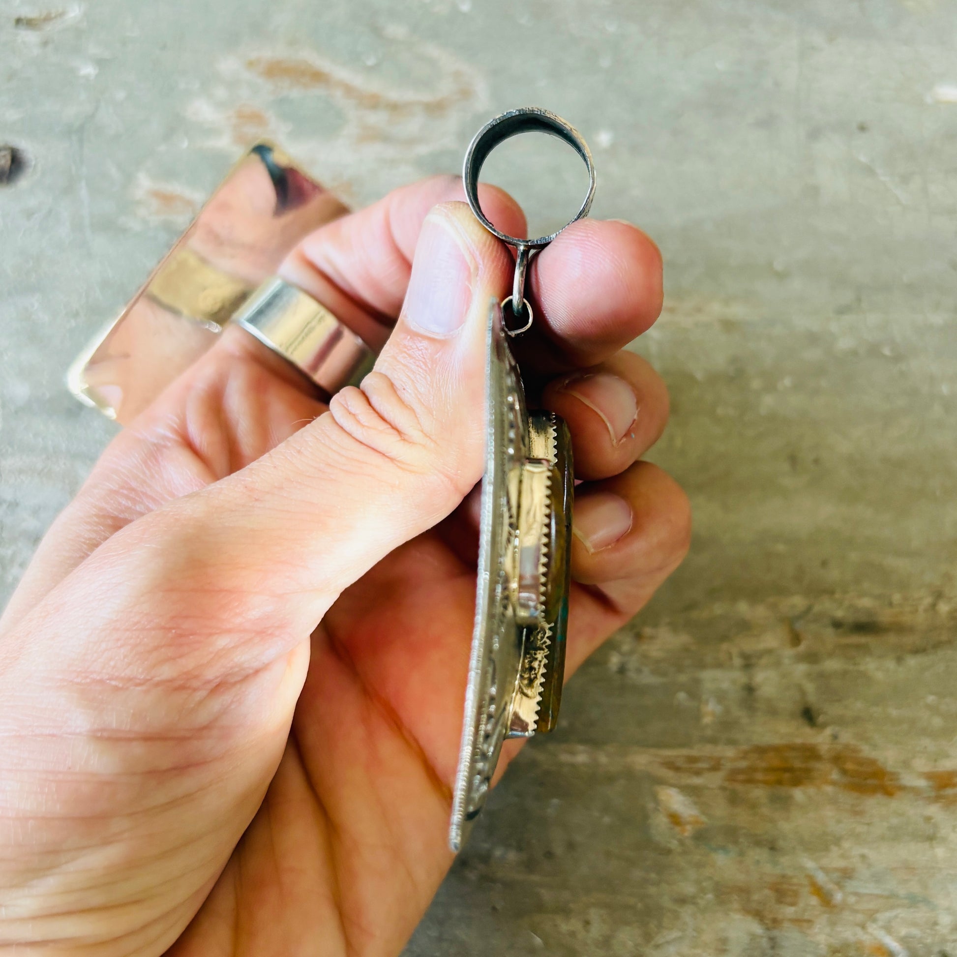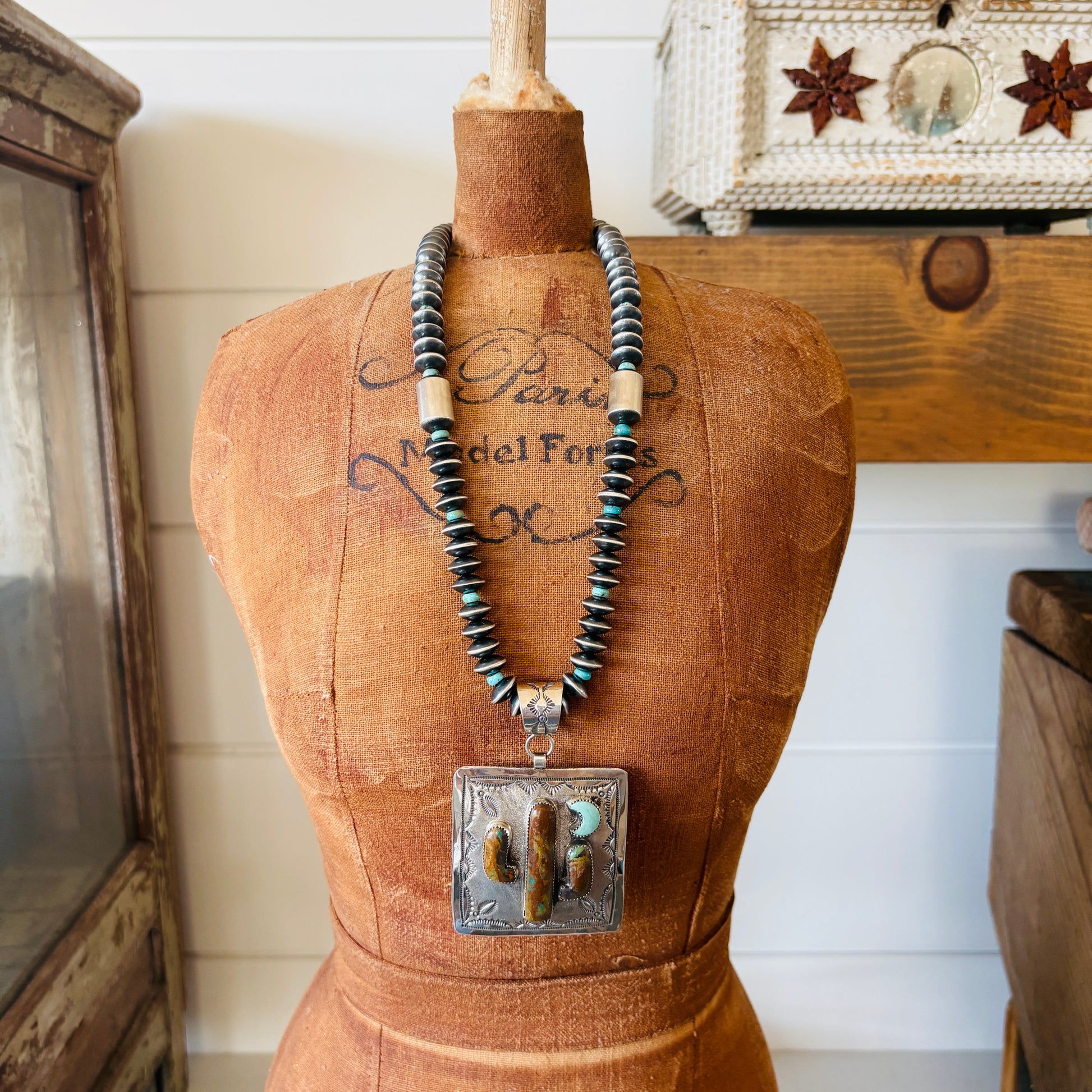 Navajo Hemerson Brown Sterling Silver & Kingman Turquoise Cactus Pendant