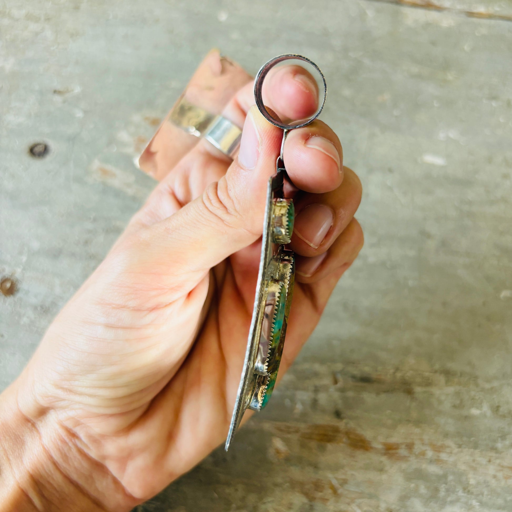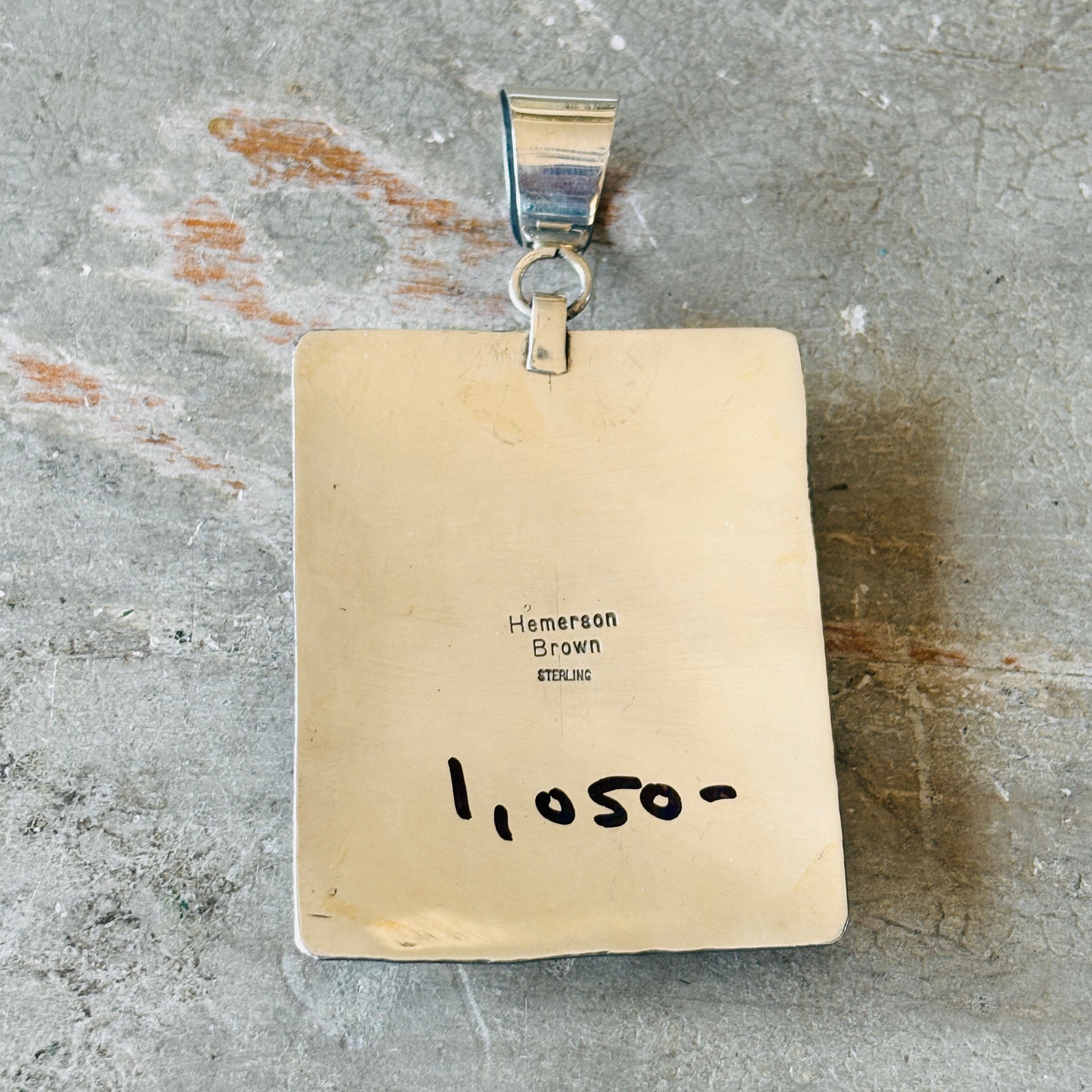 Navajo Hemerson Brown Sterling Silver & Kingman Turquoise Cactus Pendant
