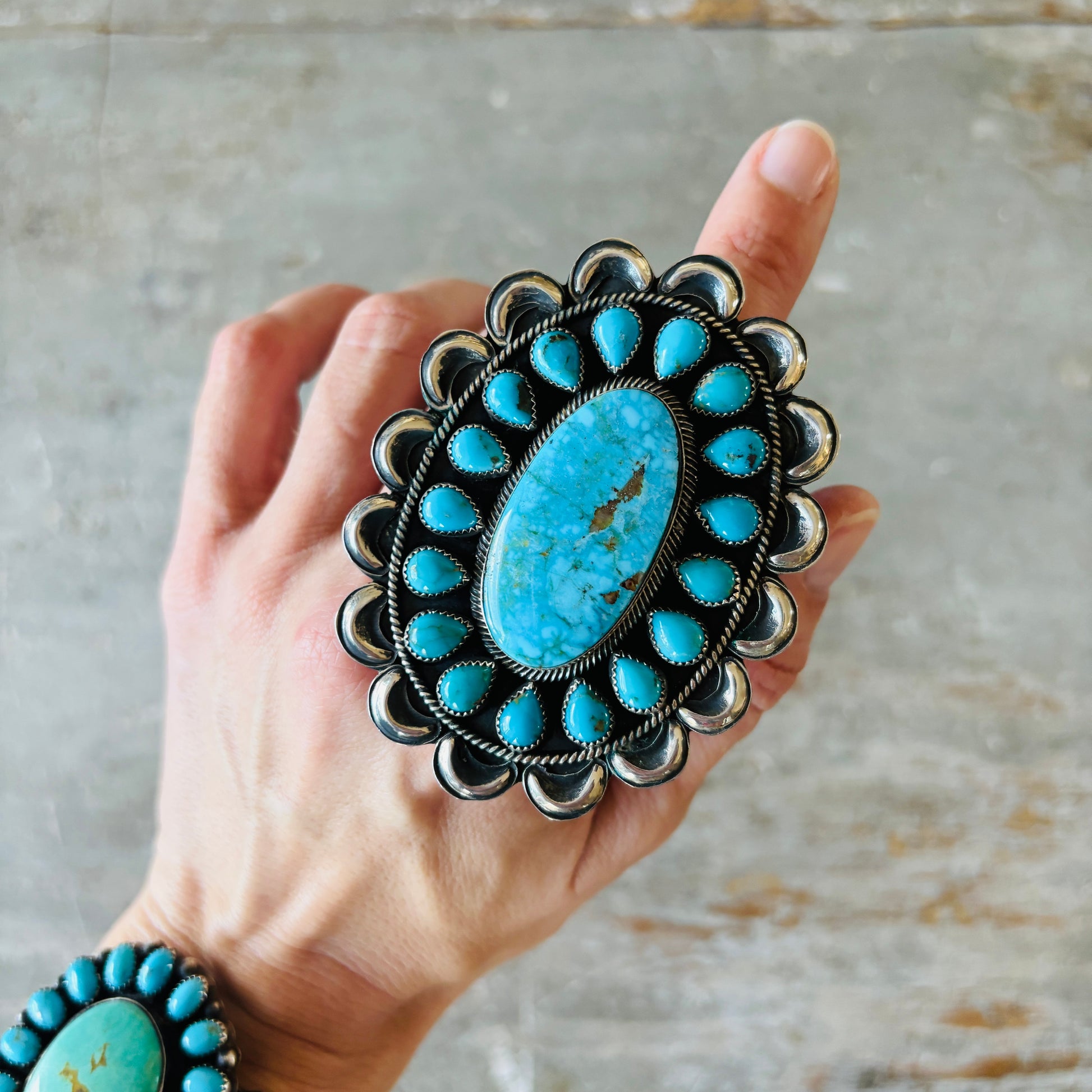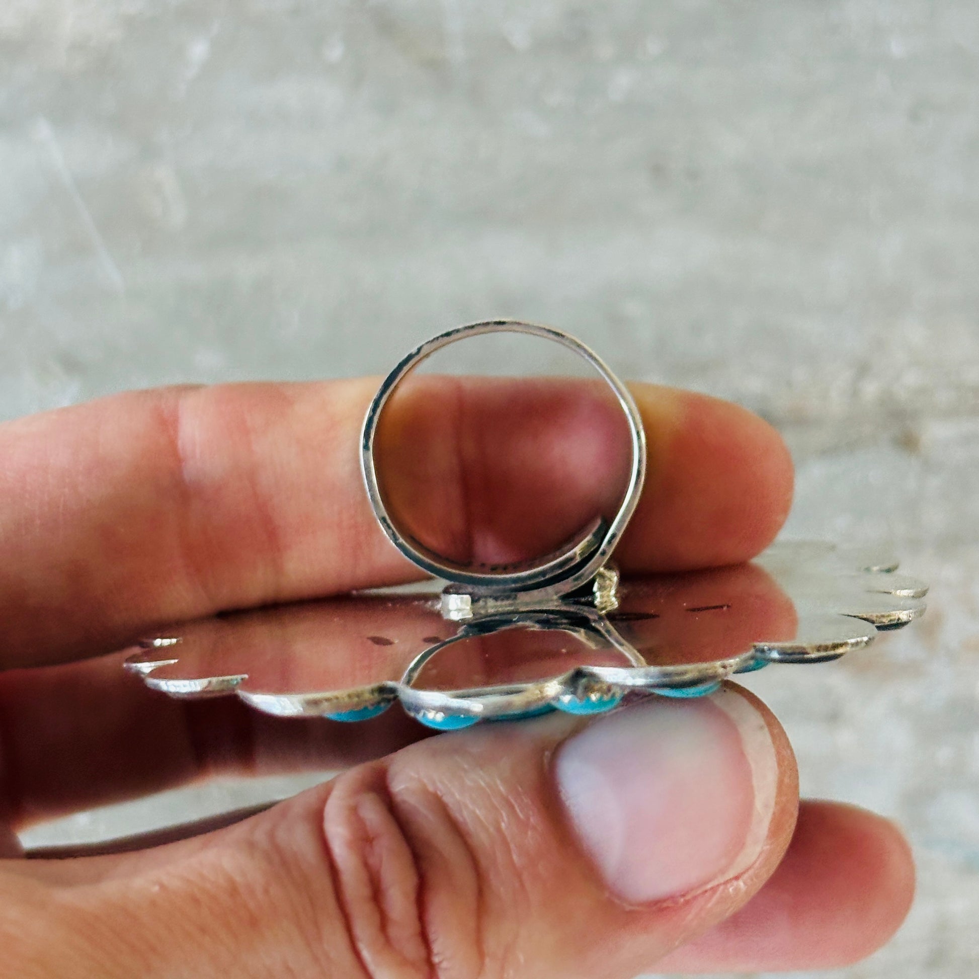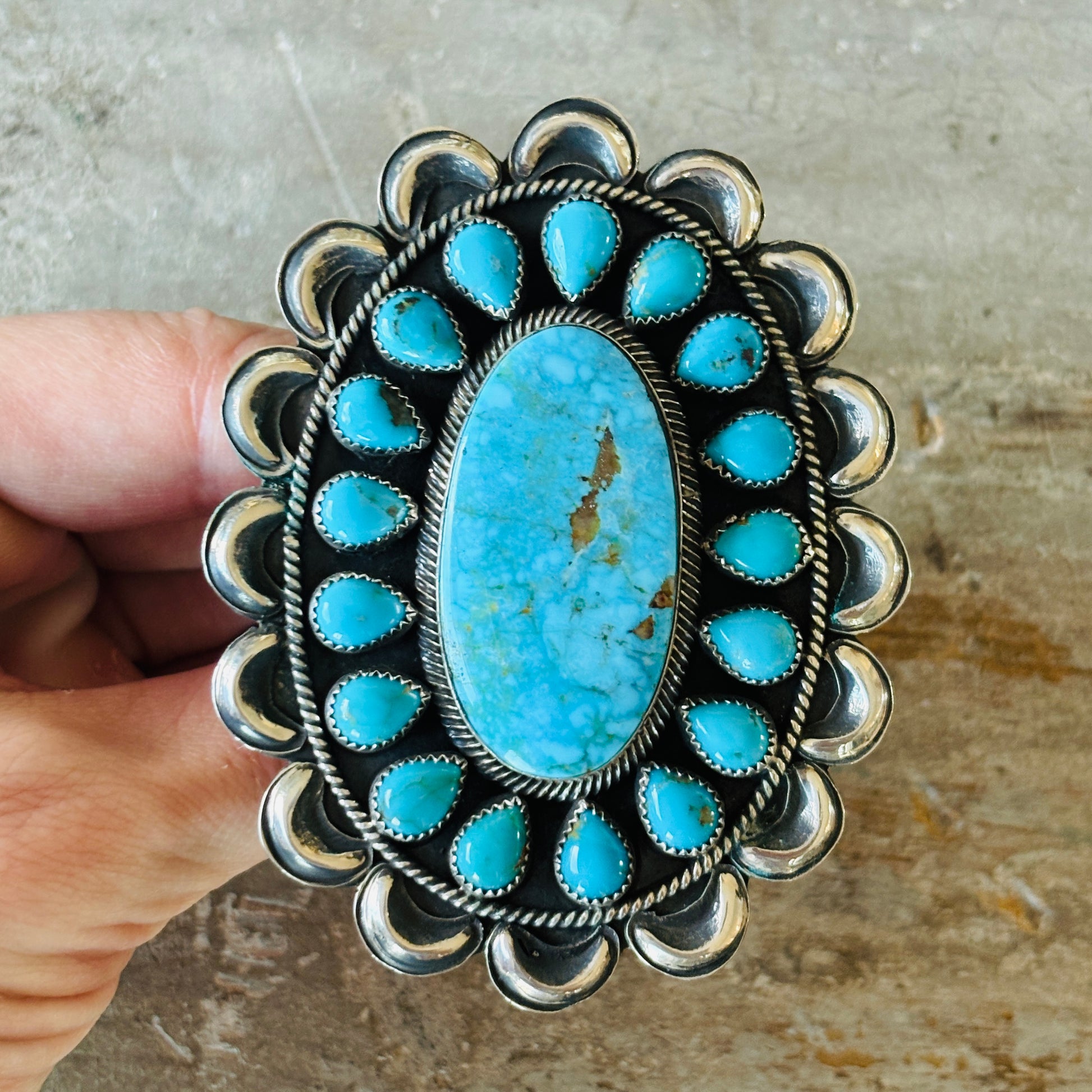 Navajo Hemerson Brown Sterling Silver & Kingman Turquoise Cluster Ring