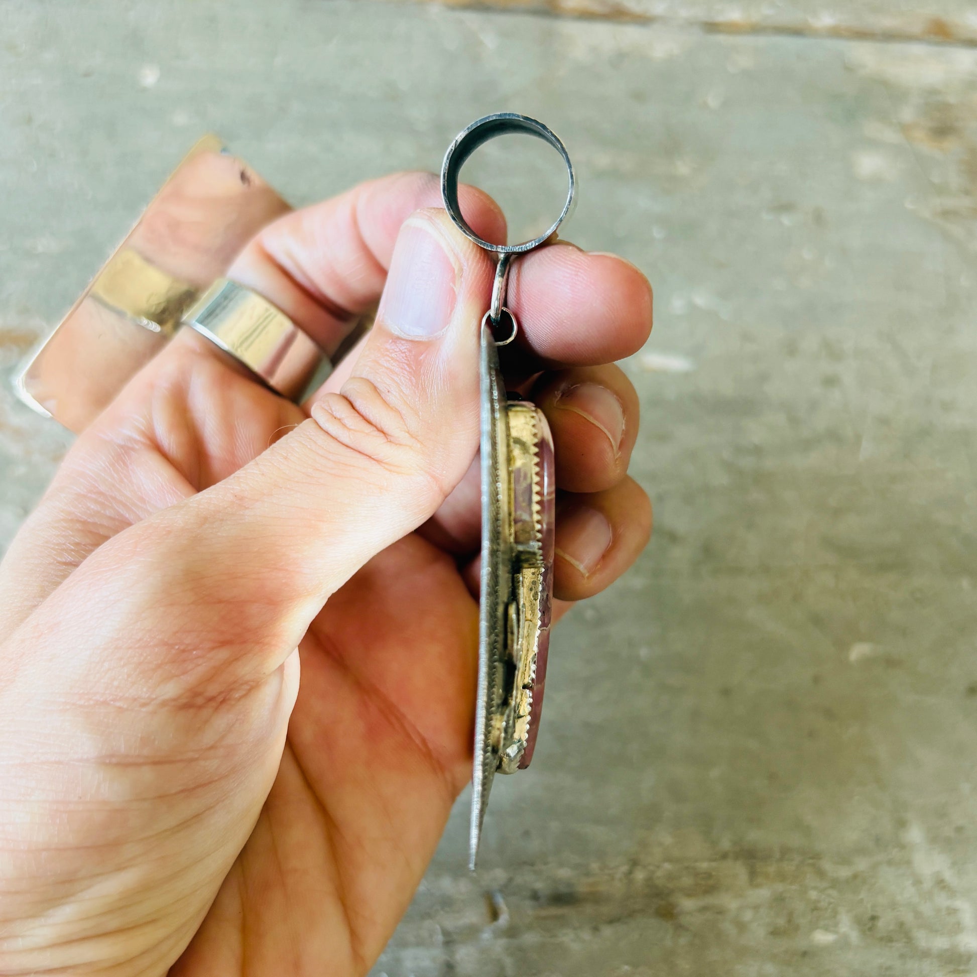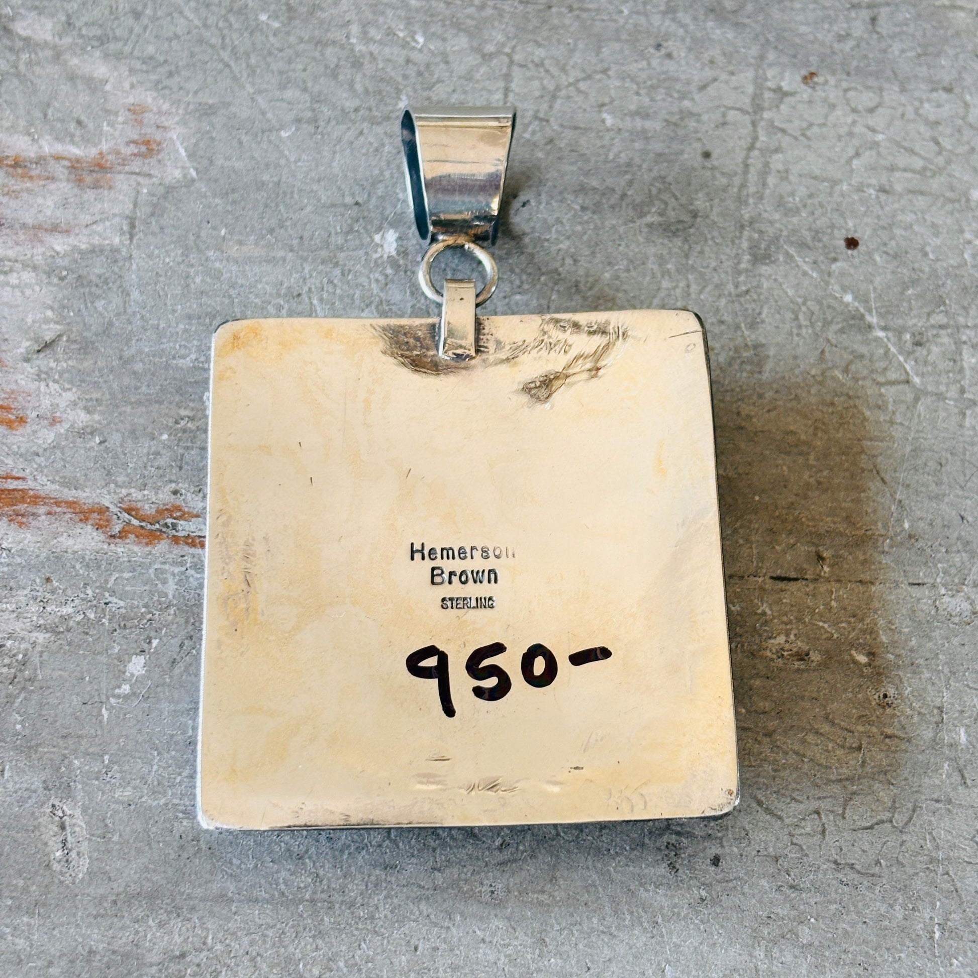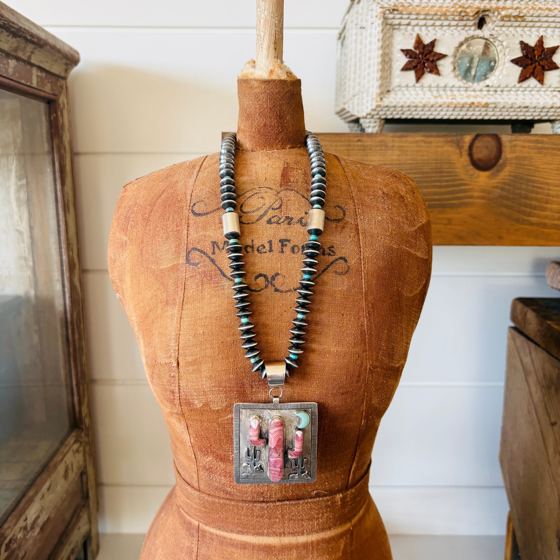 Navajo Hemerson Brown Sterling Silver - Kingman Turquoise & Rhodrocrosite Cactus Pendant