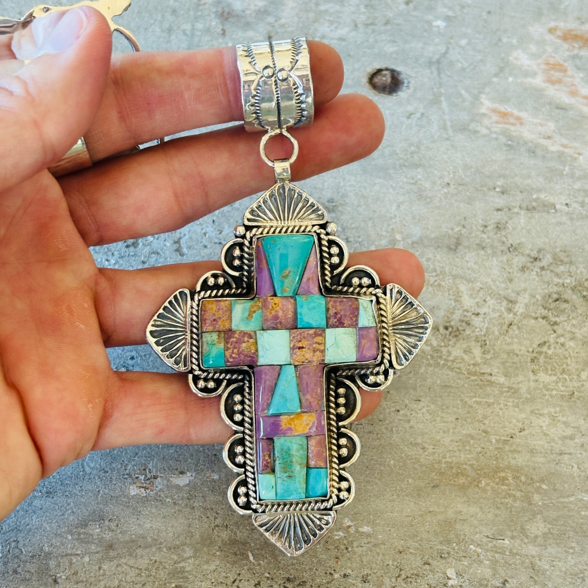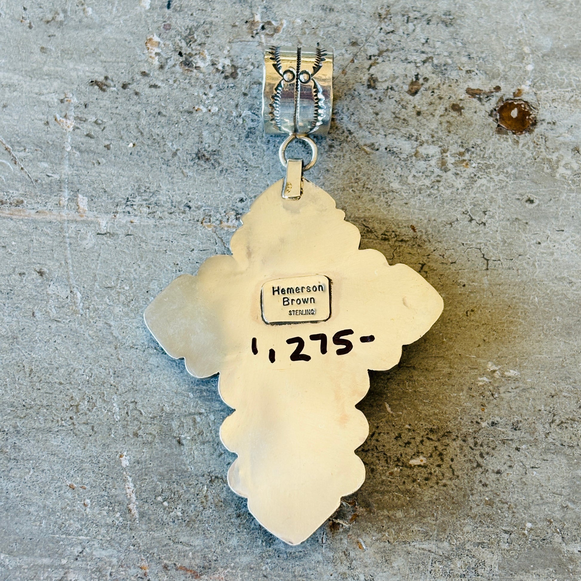 Navajo Hemerson Brown Sterling Silver - Phosphosiderite & Kingman Turquoise Cobblestone Cross