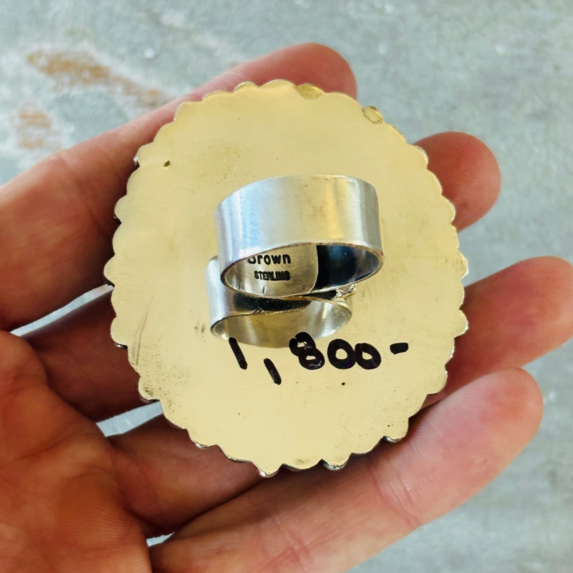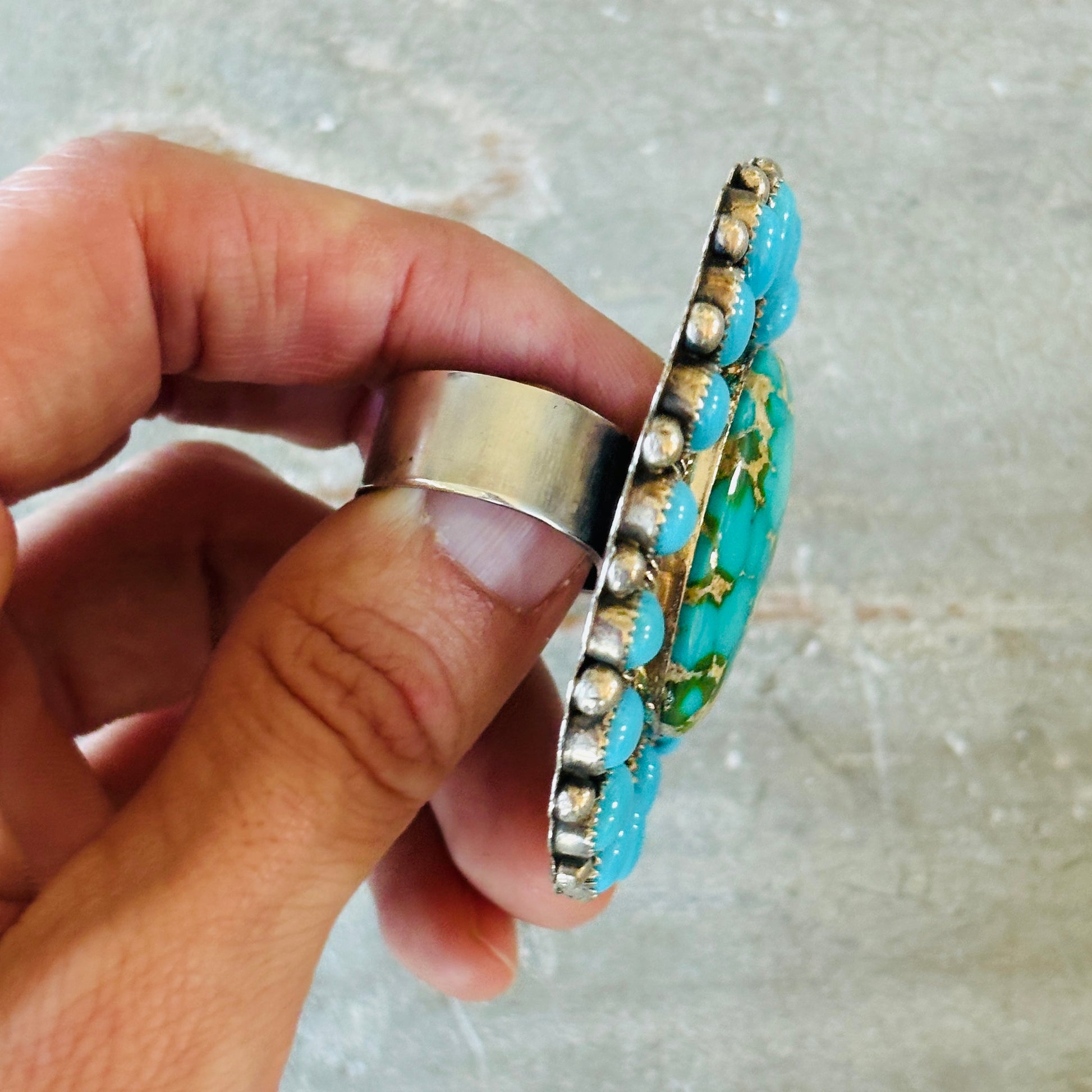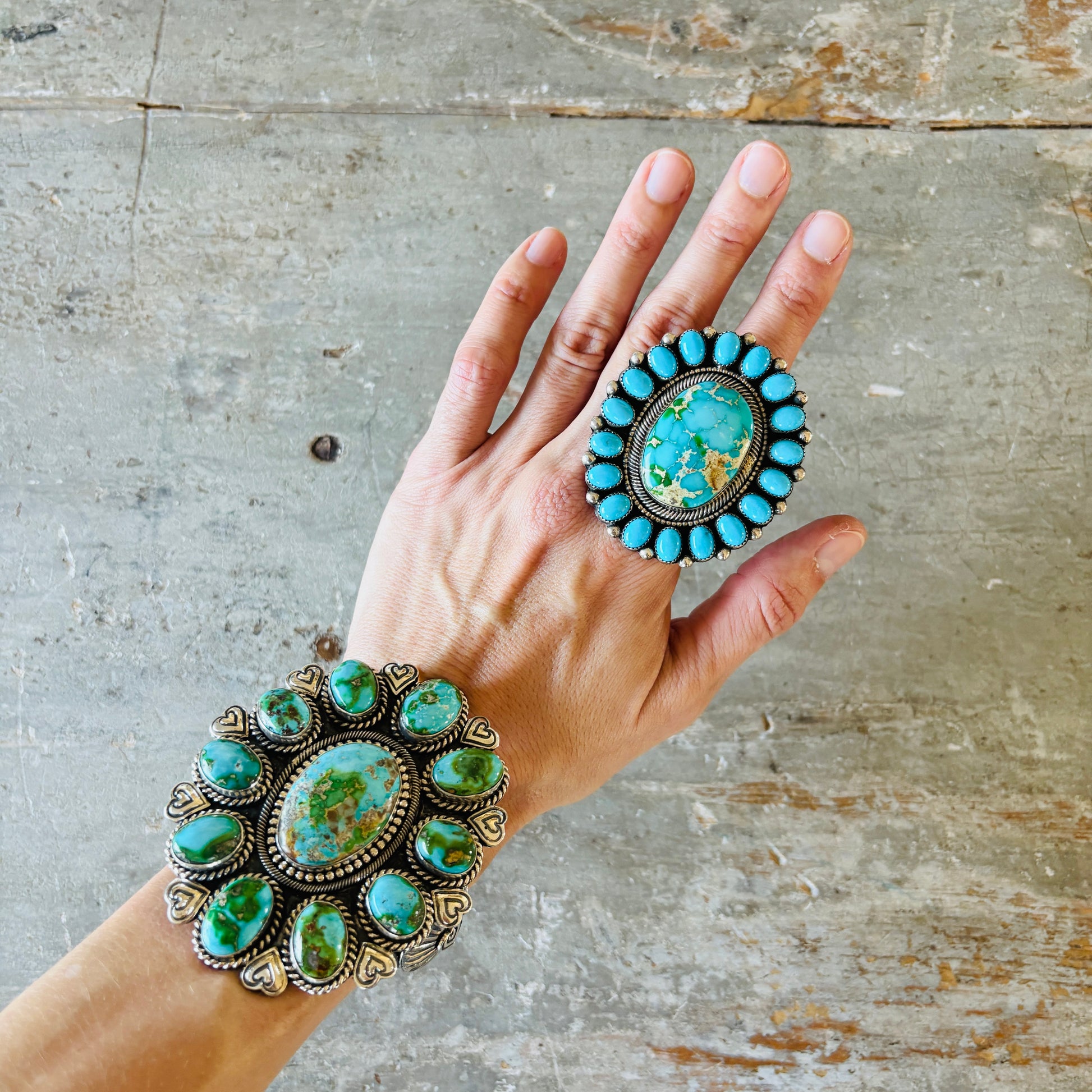 Navajo Hemerson Brown Sterling Silver - Sonoran & Sleeping Beauty Turquoise Cluster Ring