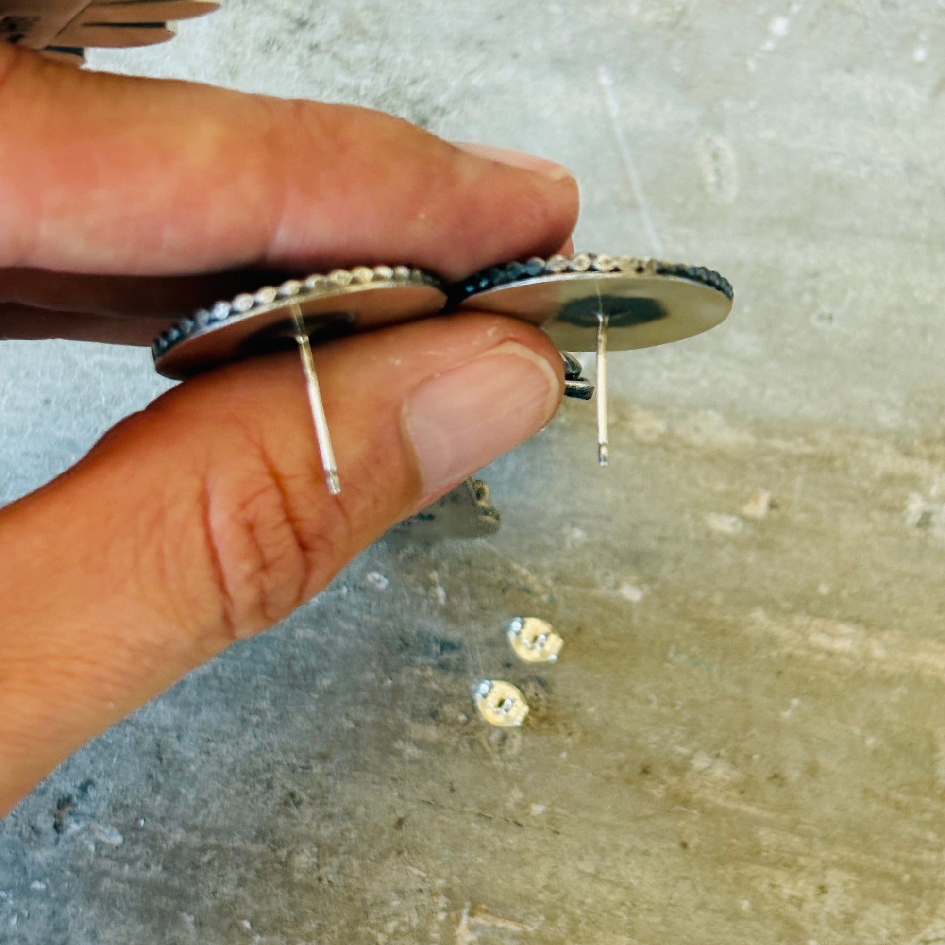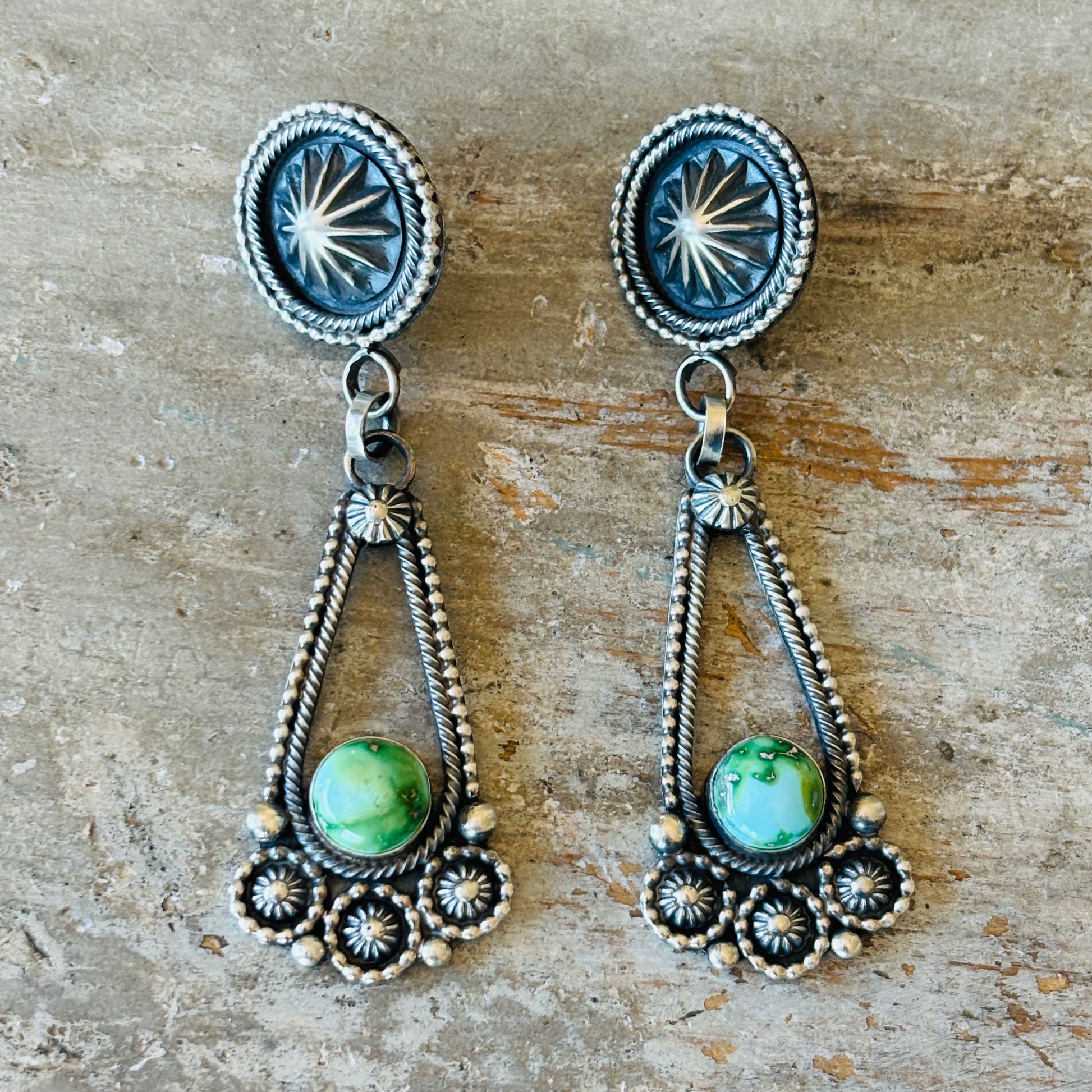 Navajo Hemerson Brown Sterling Silver & Sonoran Turquoise Earrings