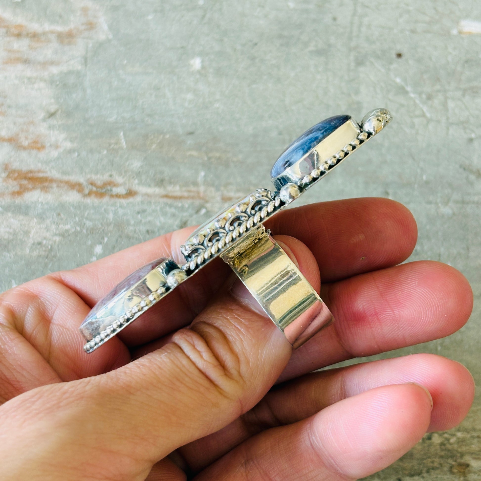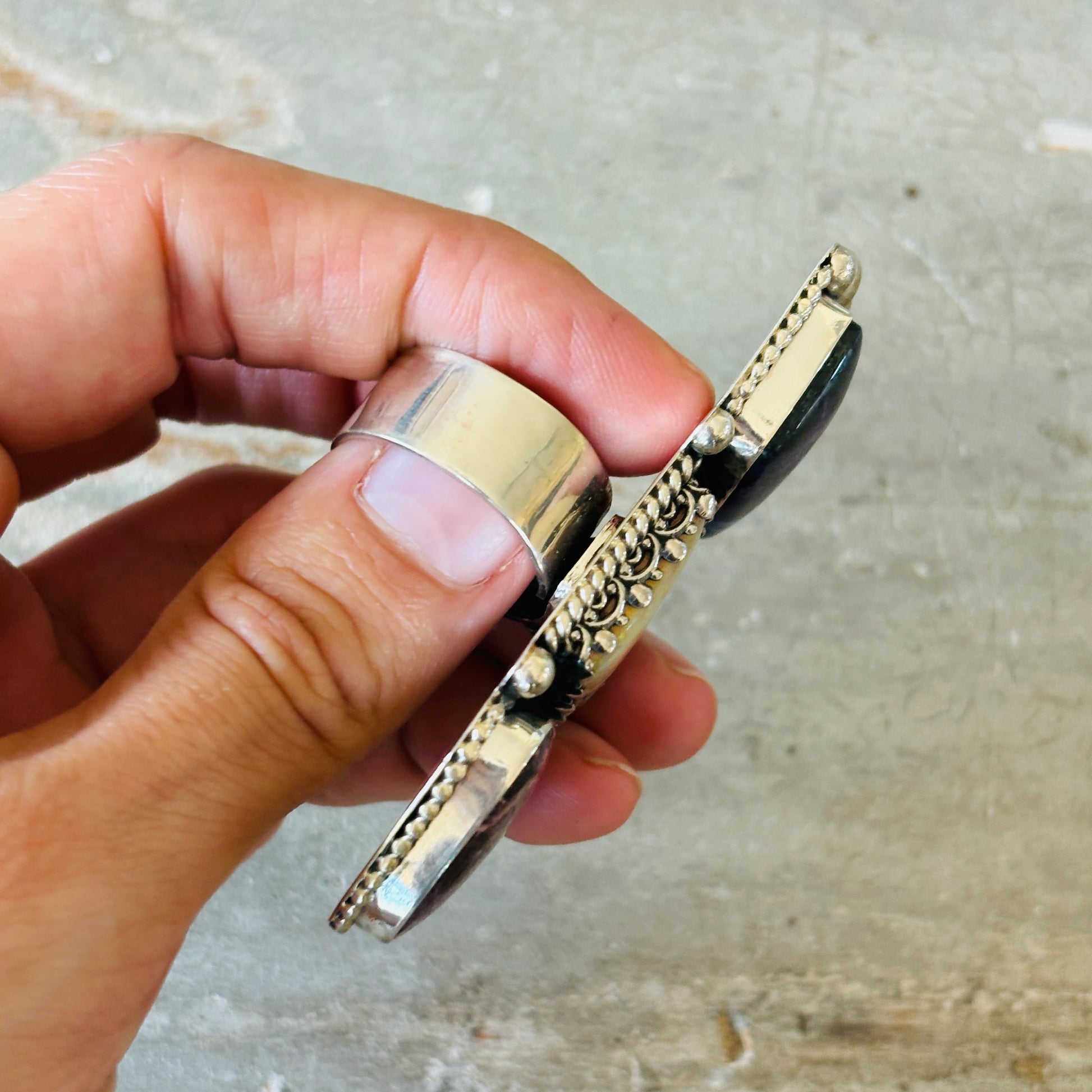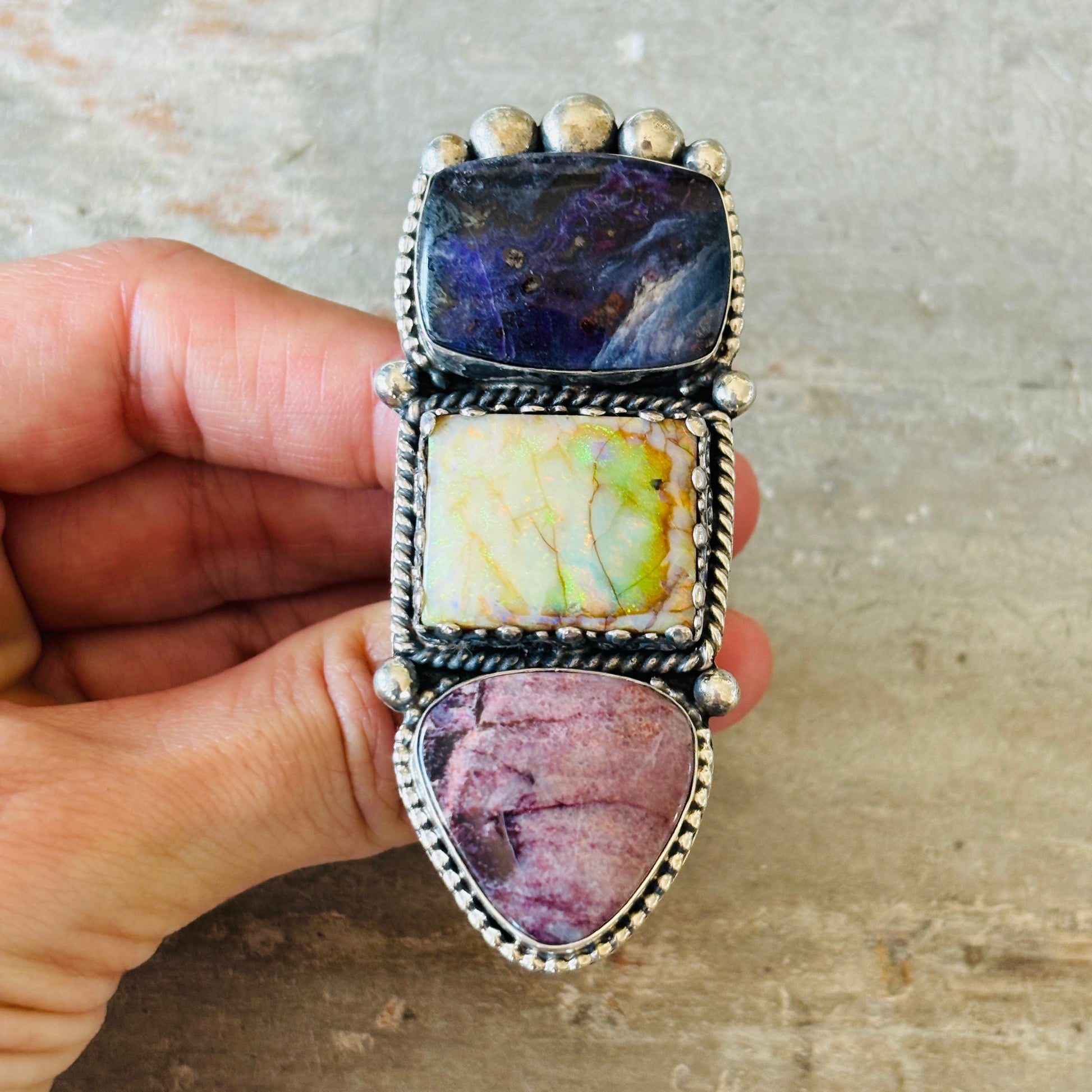 Navajo Hemerson Brown Sterling Silver - Sugilite & Lab Opal Statement Ring
