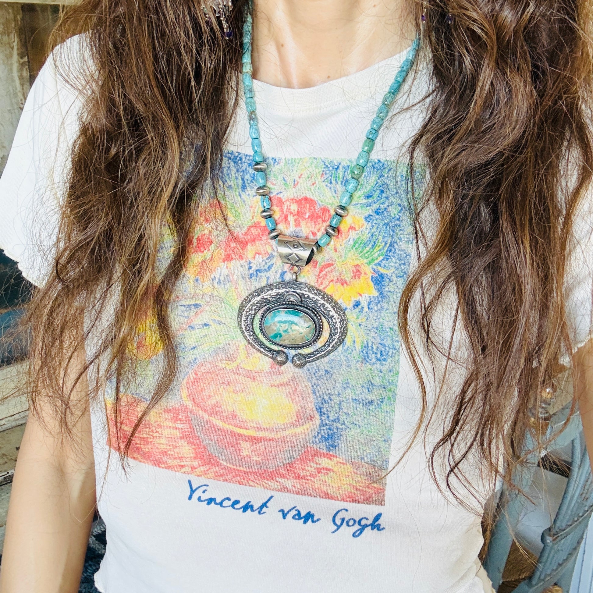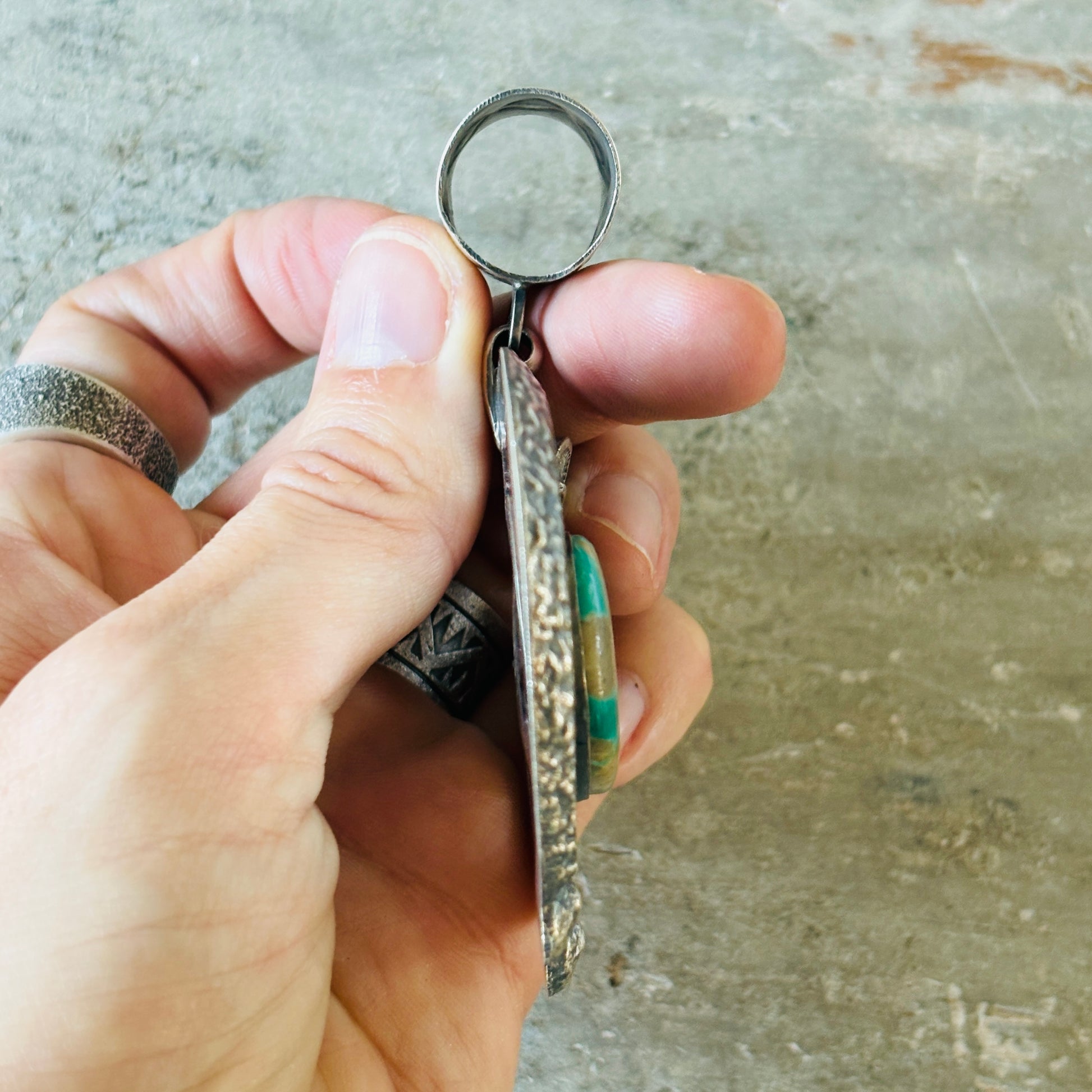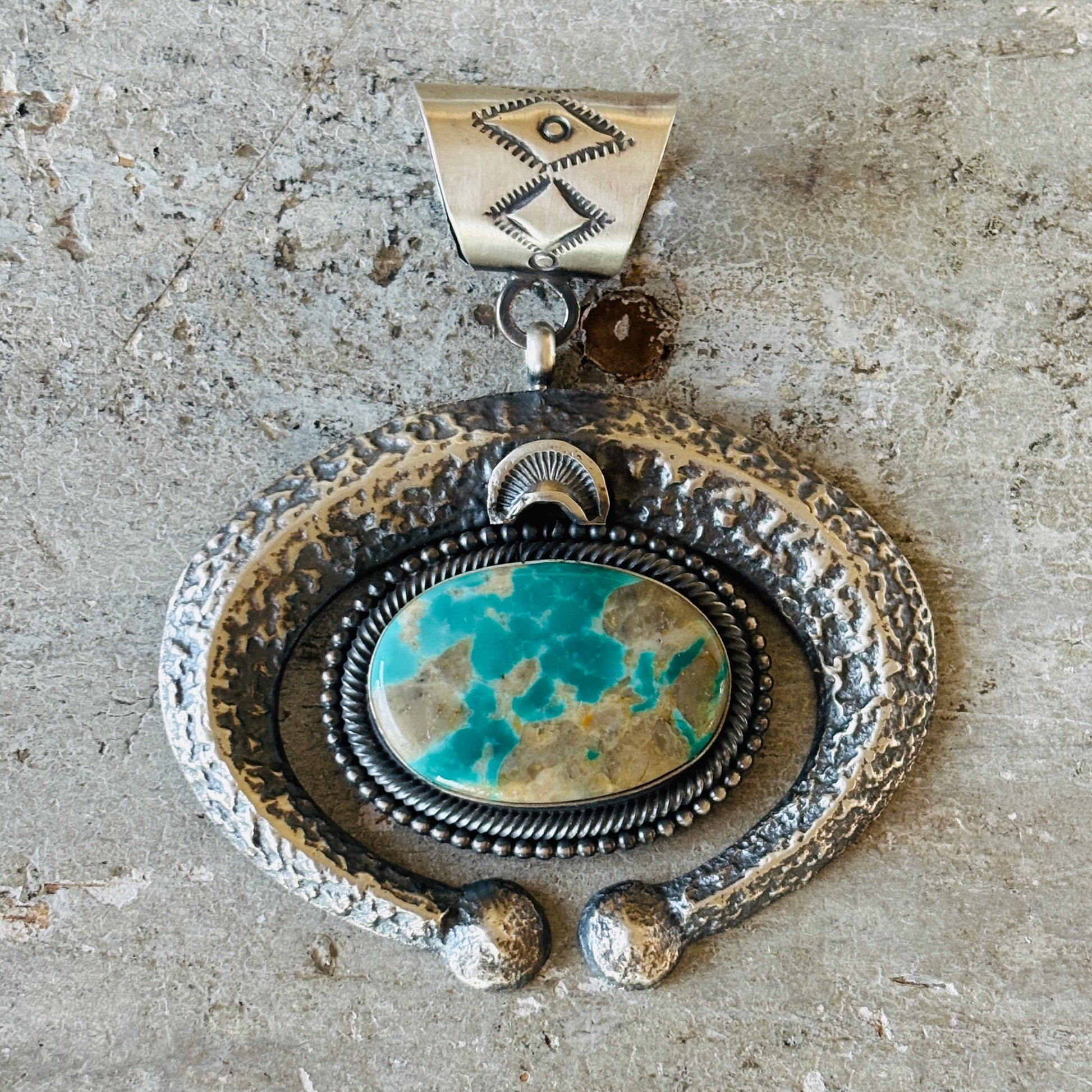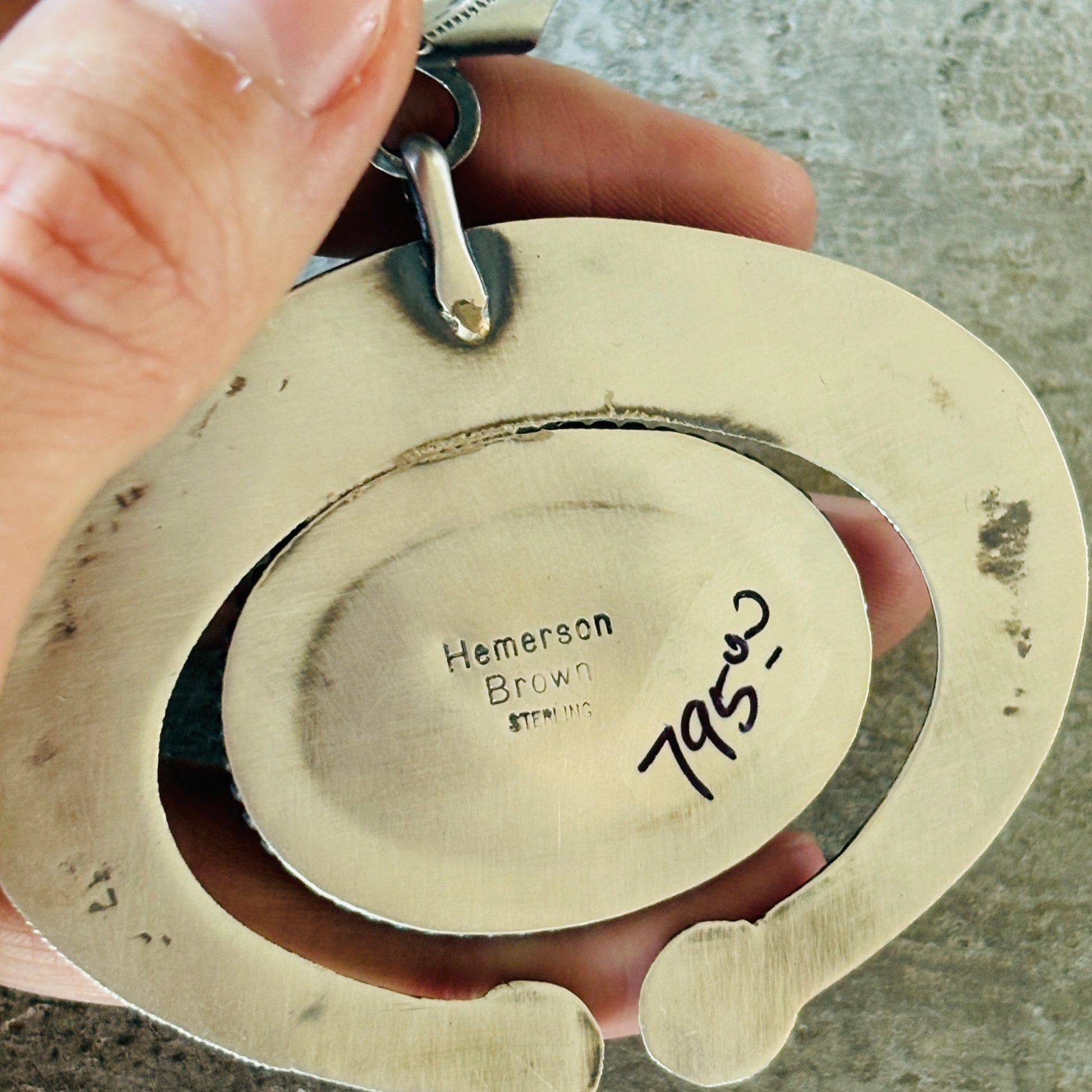 Navajo Hemerson Brown Sterling Silver & Turquoise Mountain Pendant