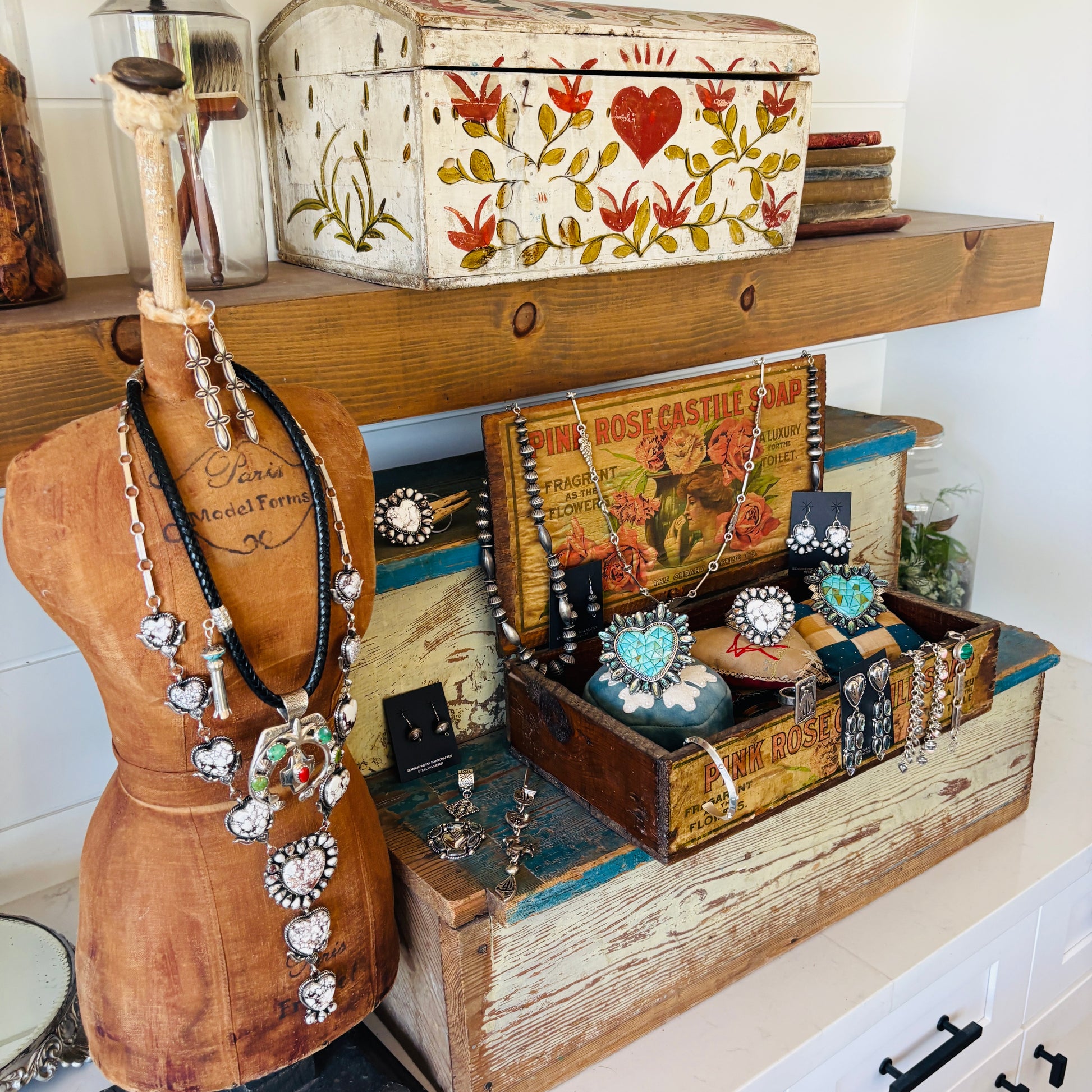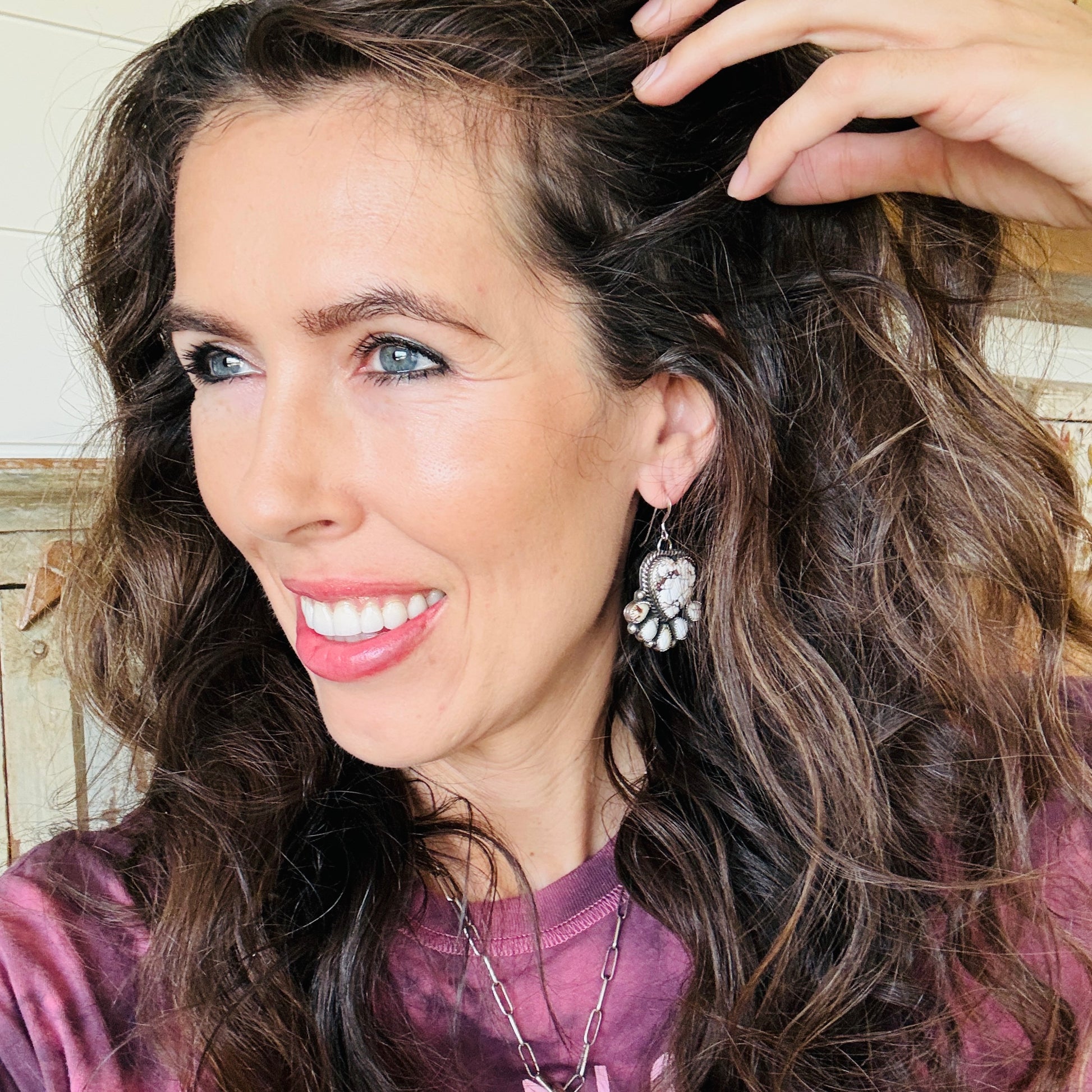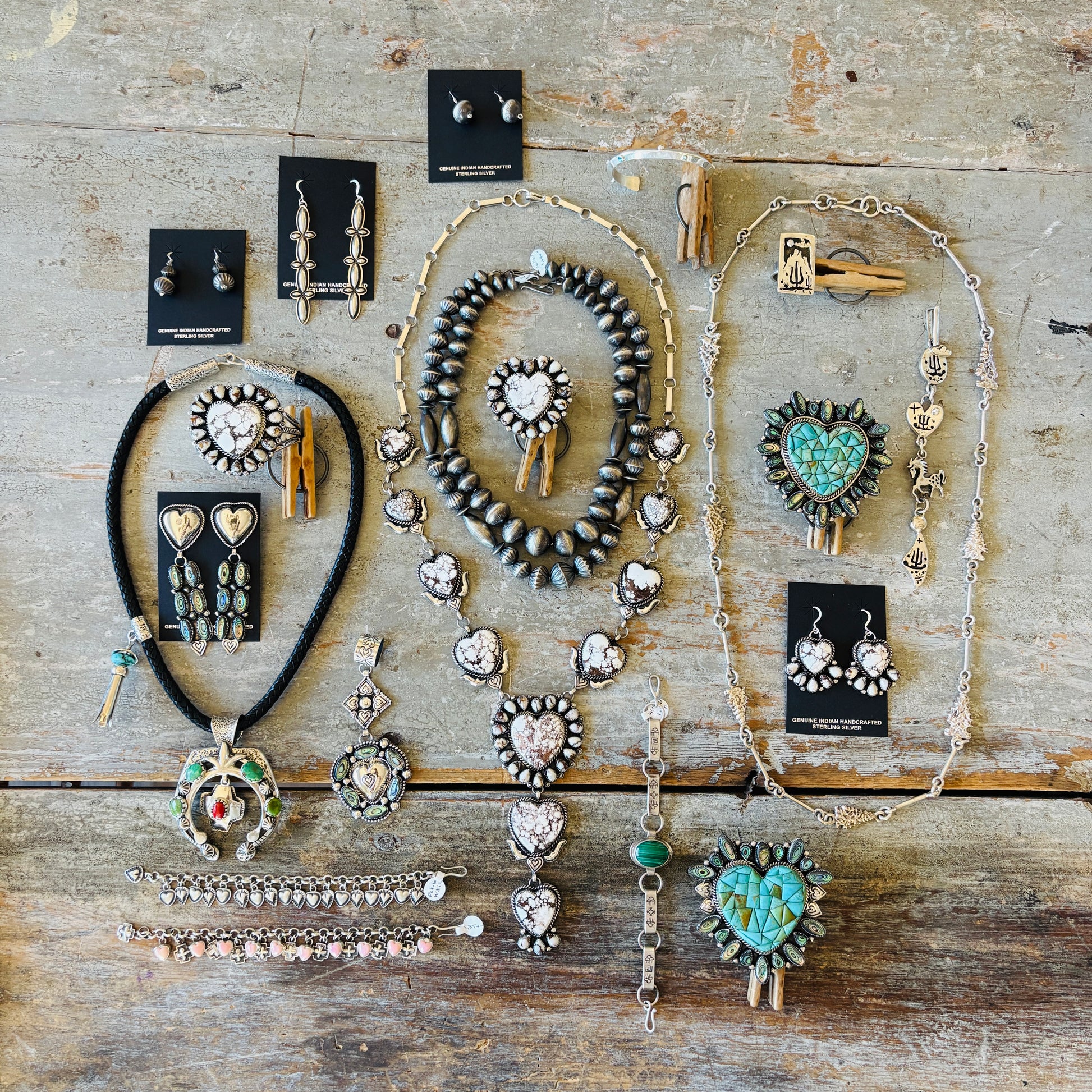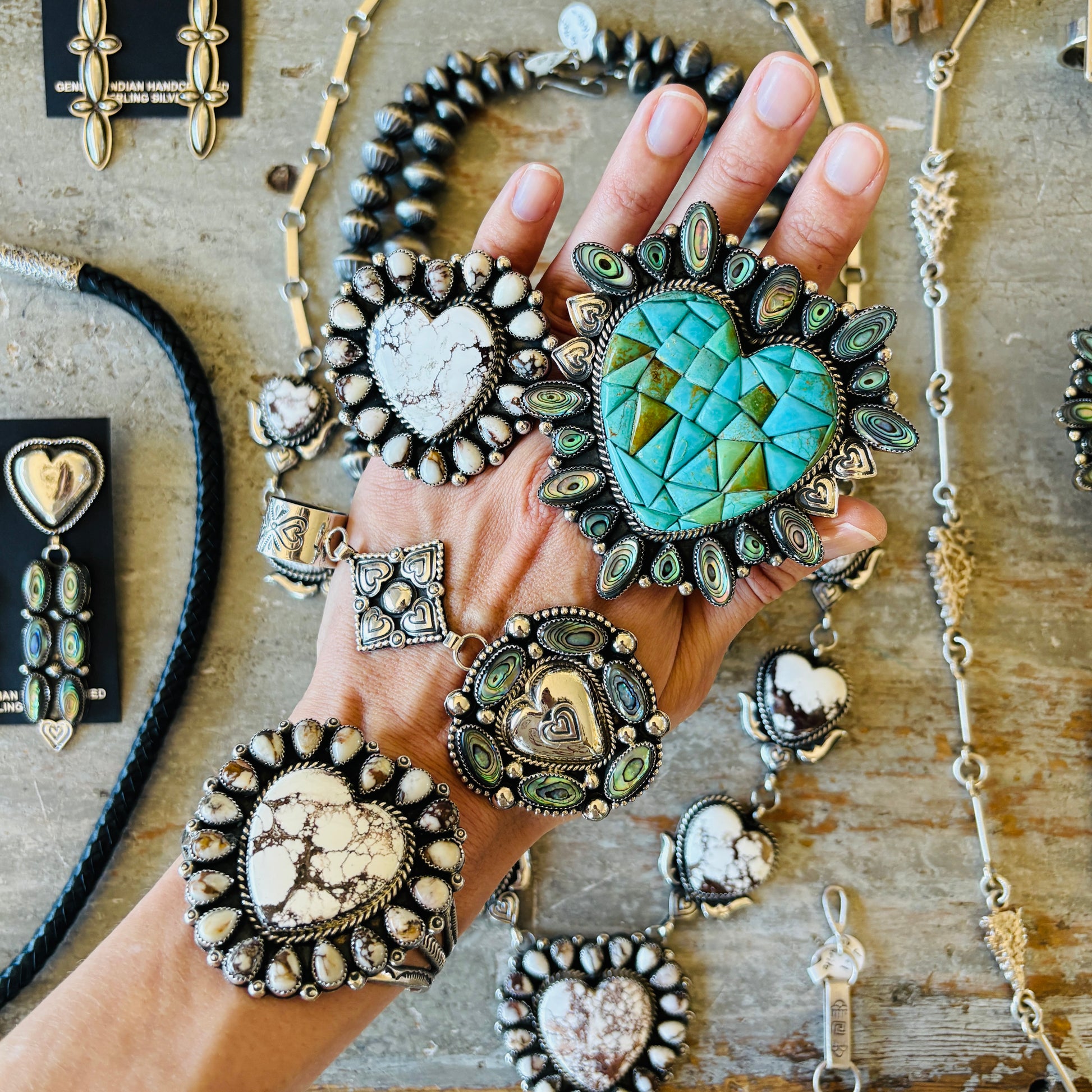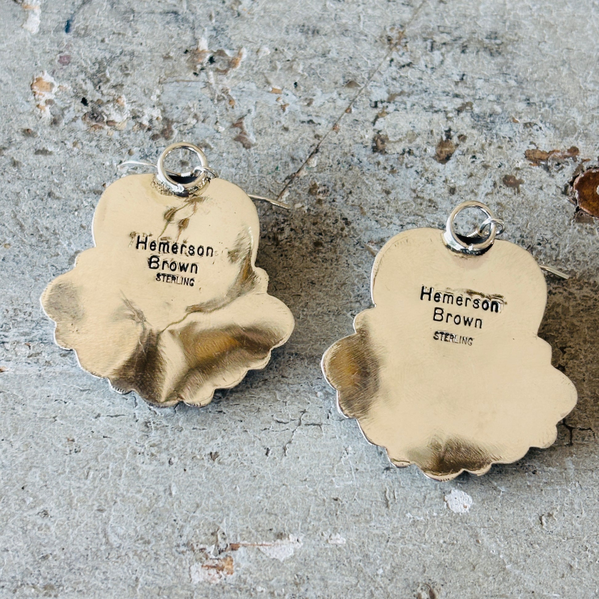 Navajo Hemerson Brown Sterling Silver & Wild Horse Jasper Cluster Heart Earrings