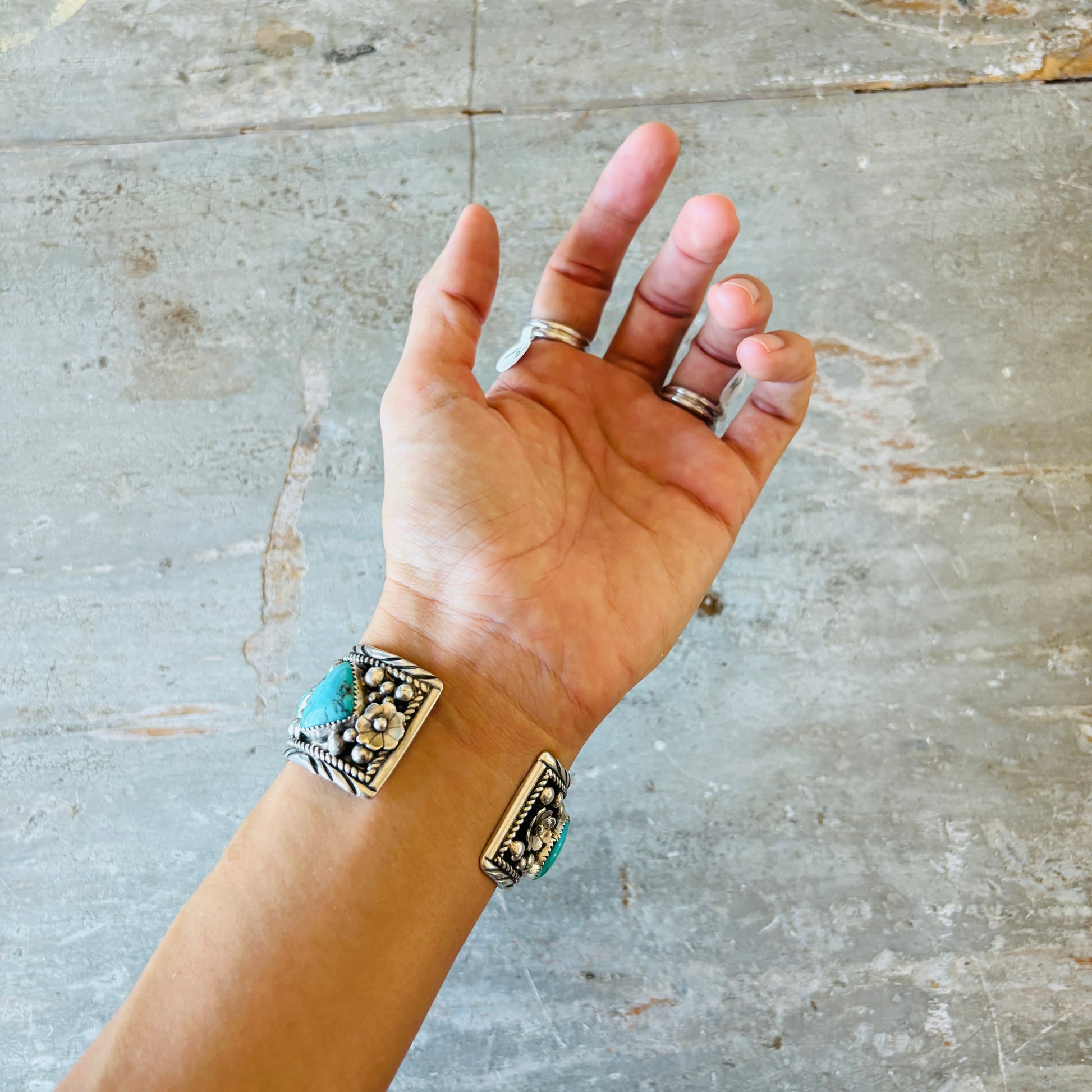 Navajo Jimmie Yazzie Sterling Silver & Royston Turquoise Stacker Cuff