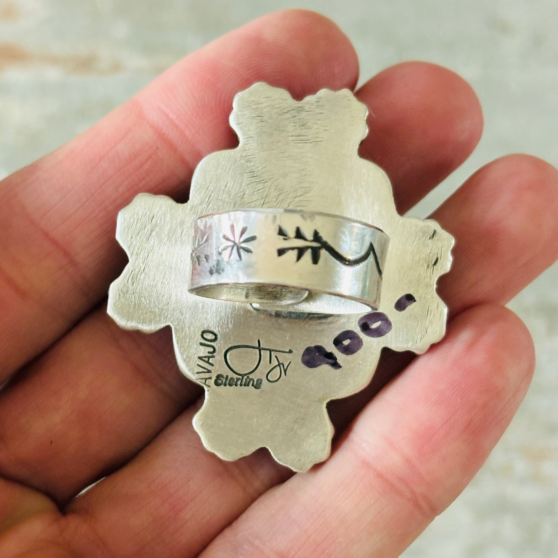 Navajo JT Willie Sterling Silver & Web Kingman Turquoise Ring