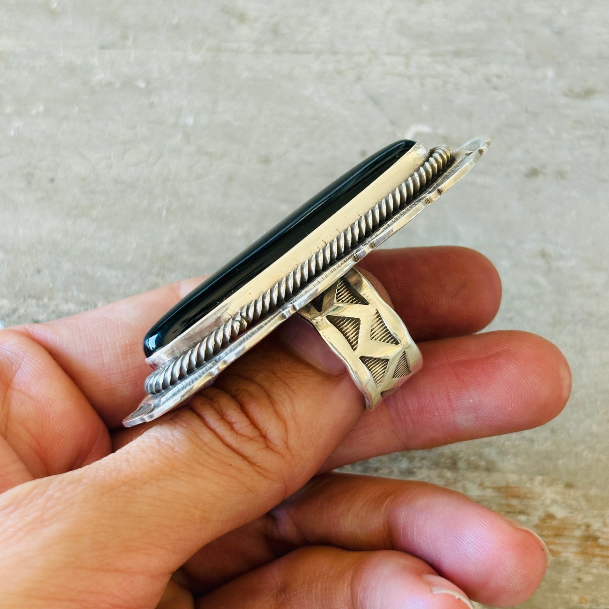 Navajo Julian Chavez Sterling Silver & Black Onyx Ring