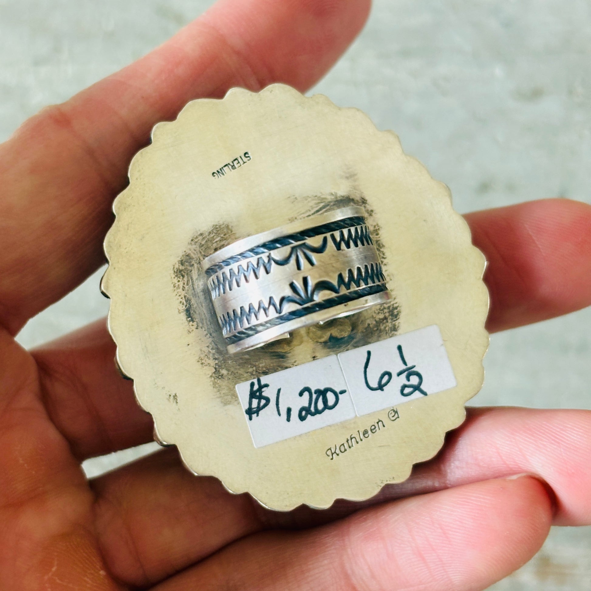 Navajo Kathleen Chavez Sterling Silver - Sonoran & Kingman Cluster Ring