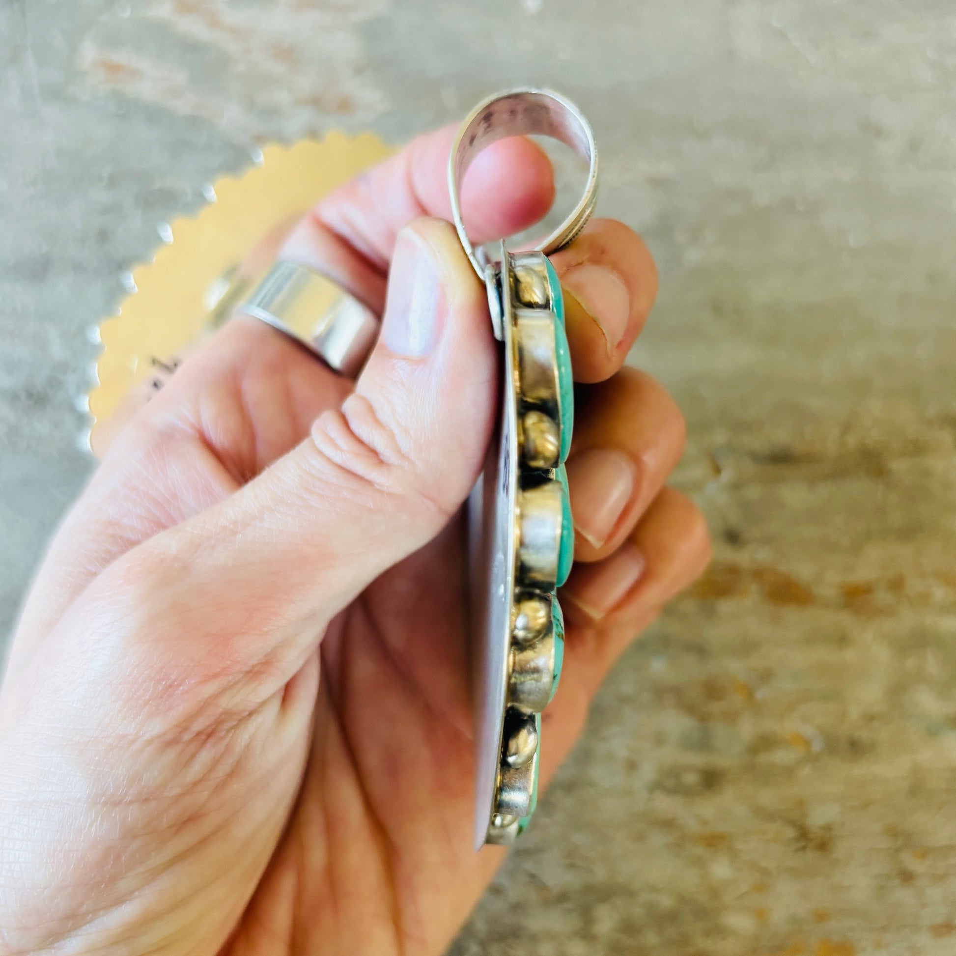 Navajo Kathleen Livingston Sterling Silver & Kingman Turquoise Heart Cluster Pendant