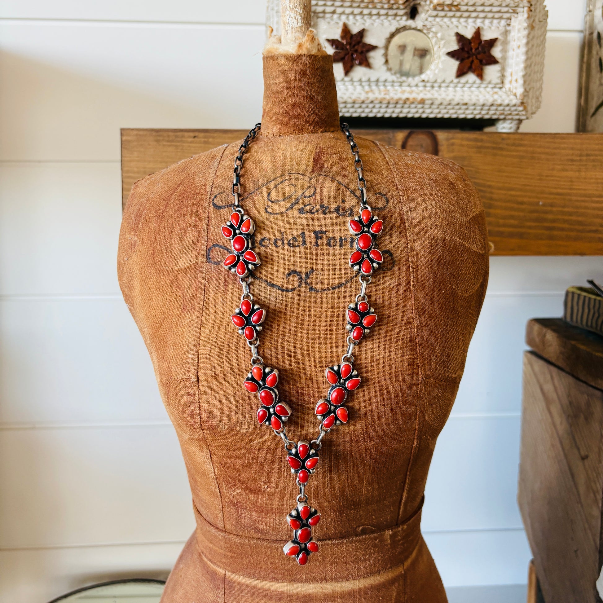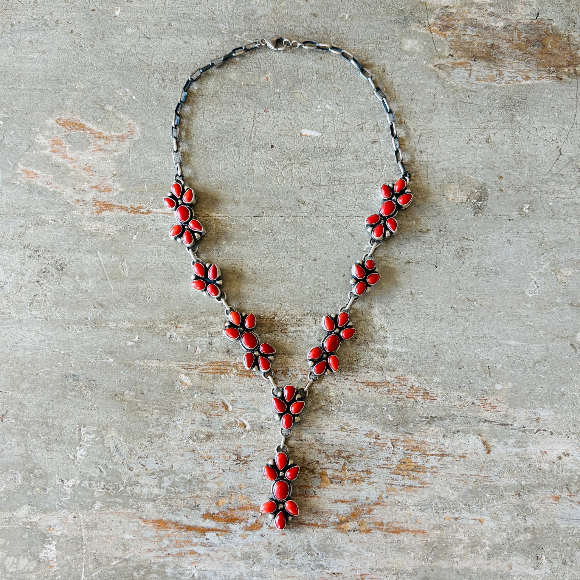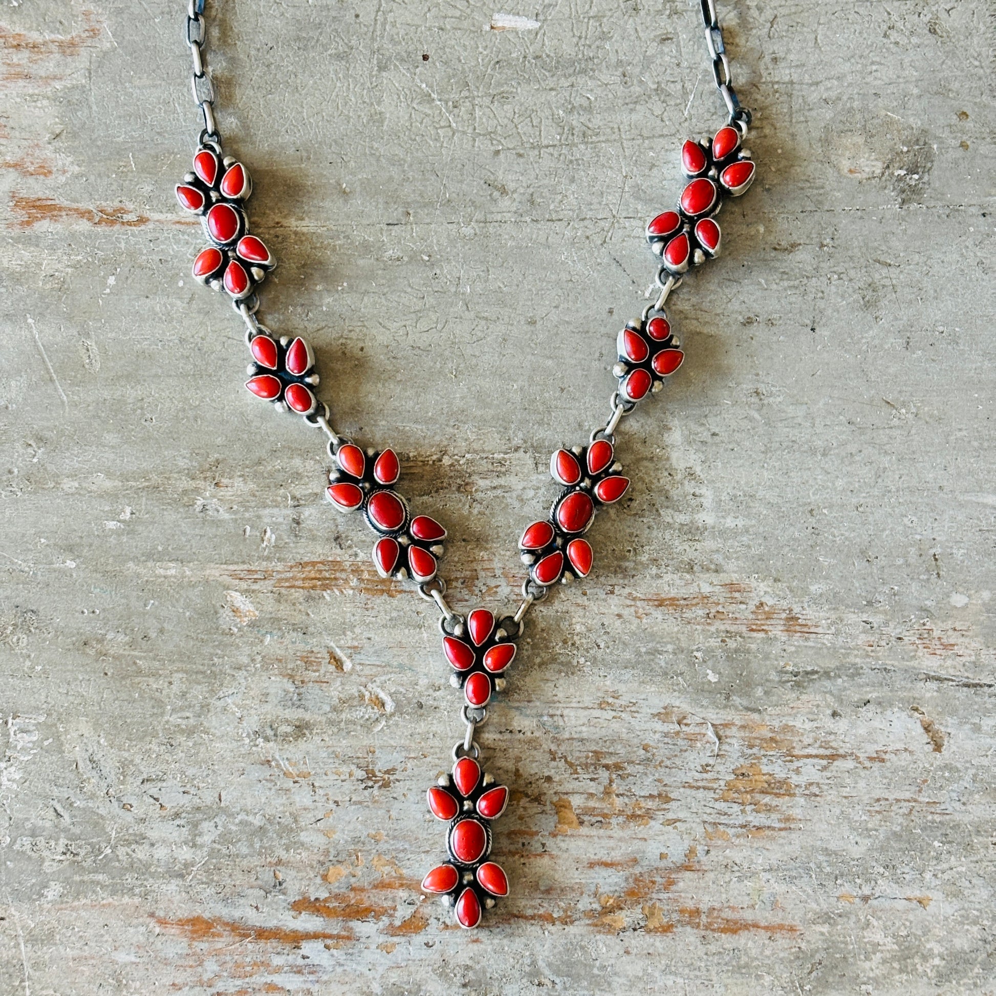Navajo Kathleen Livingston Sterling Silver & Red Coral Lariat