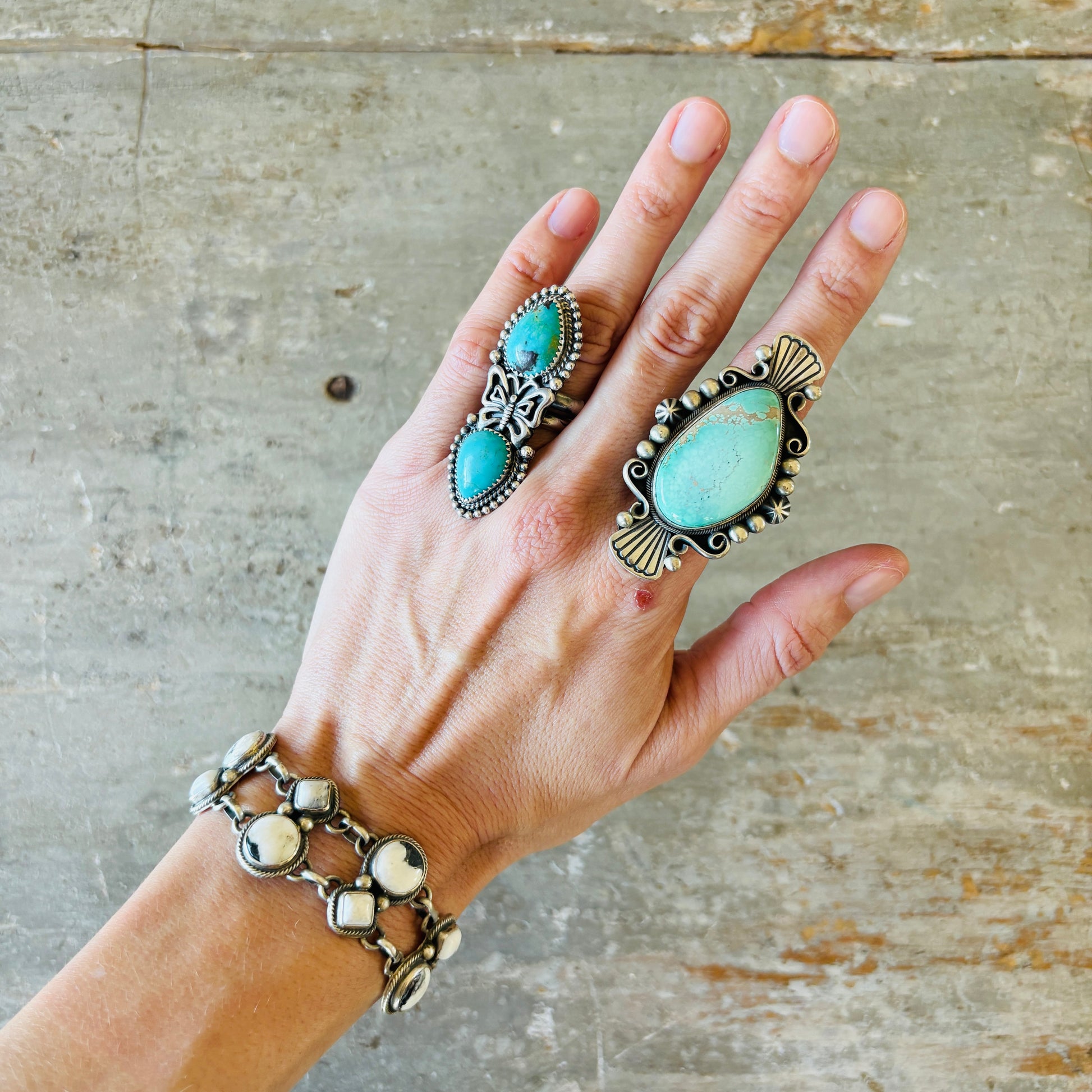 Navajo Kathleen Livingston Sterling Silver & White Buffalo Double Row Bracelet