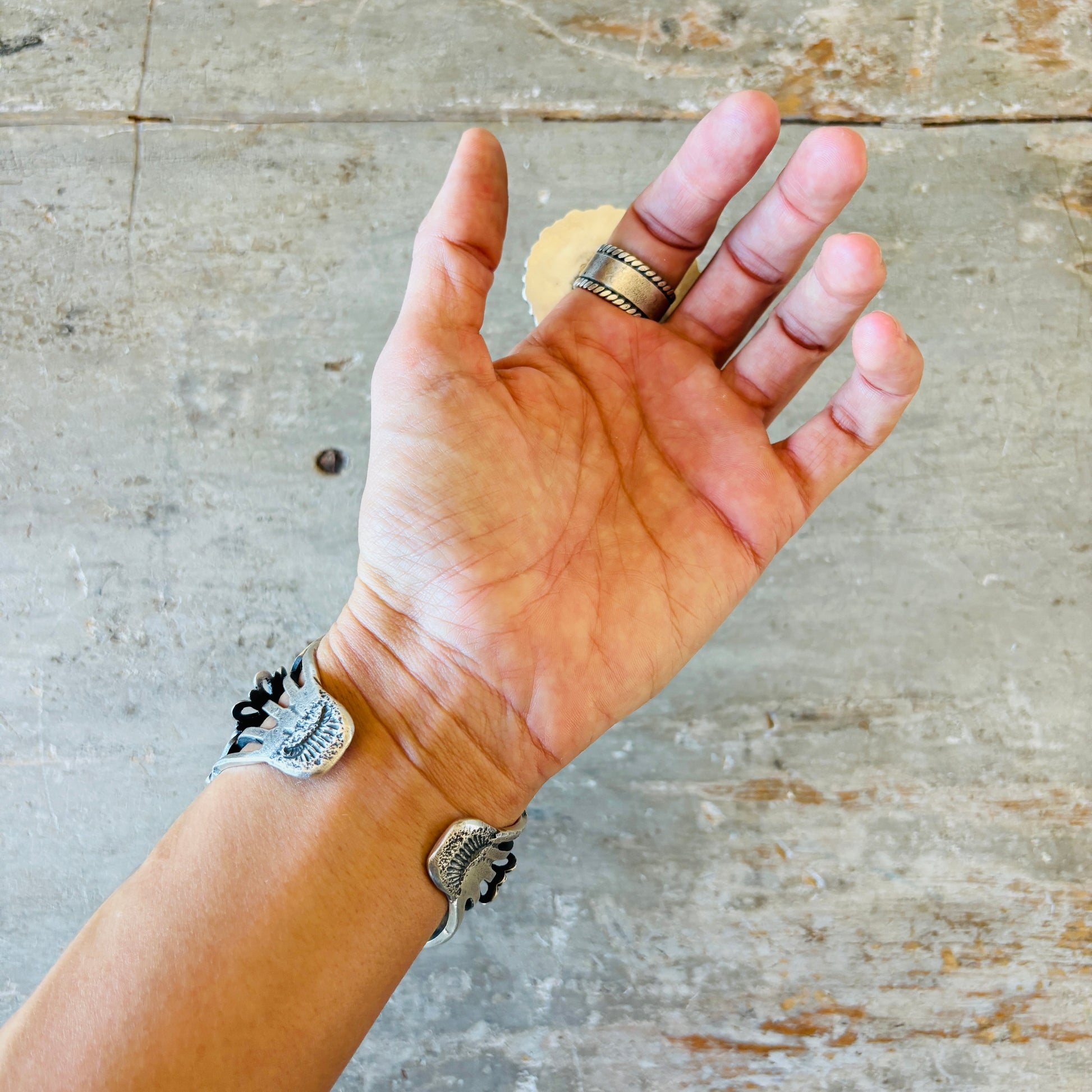 Navajo Kindale Billah Sterling Silver & Campitos Turquoise Canoe Ring