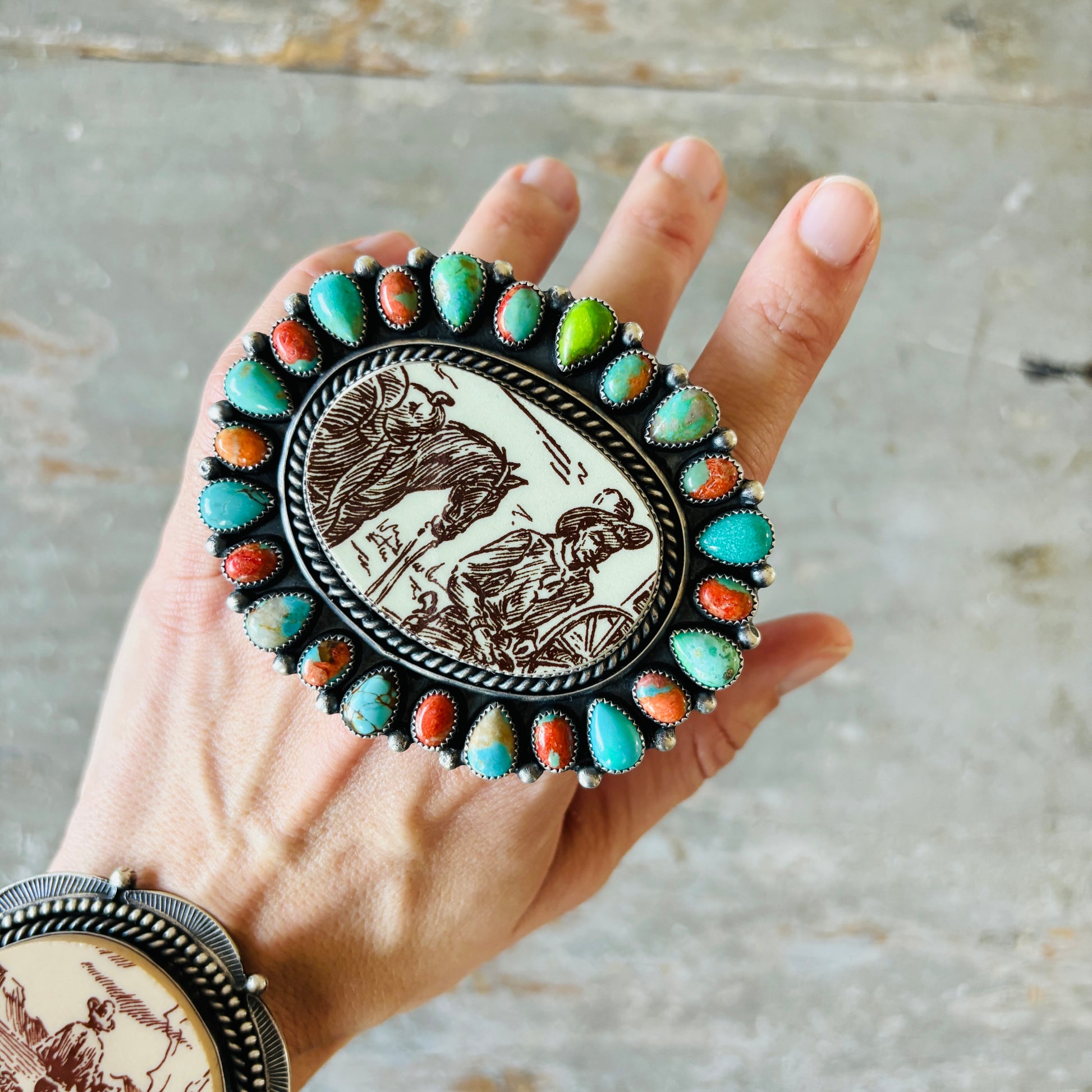 Navajo Kindale Billah Sterling Silver - Ceramic - Mojave & Kingman Turquoise Cowboy Ring